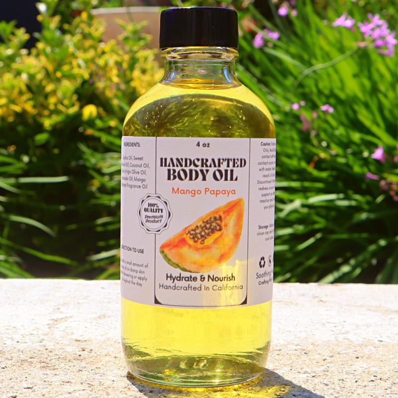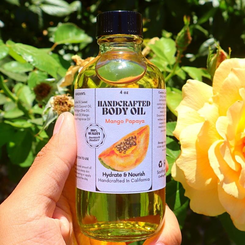 Give your skin, hair, and cuticles the tropical care they deserve with our 4 oz Multi-Use Mango Papaya Oil! Handcrafted with love, this lightweight, fast-absorbing oil locks in moisture, adds a natural glow, and strengthens from head to toe โ all with a delicious, fruity mango papaya scent.