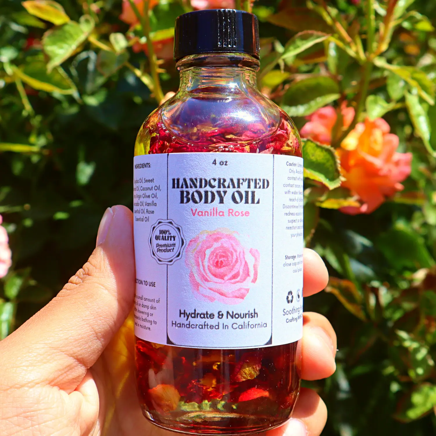 The bottle has rose petals inside cute and smells good