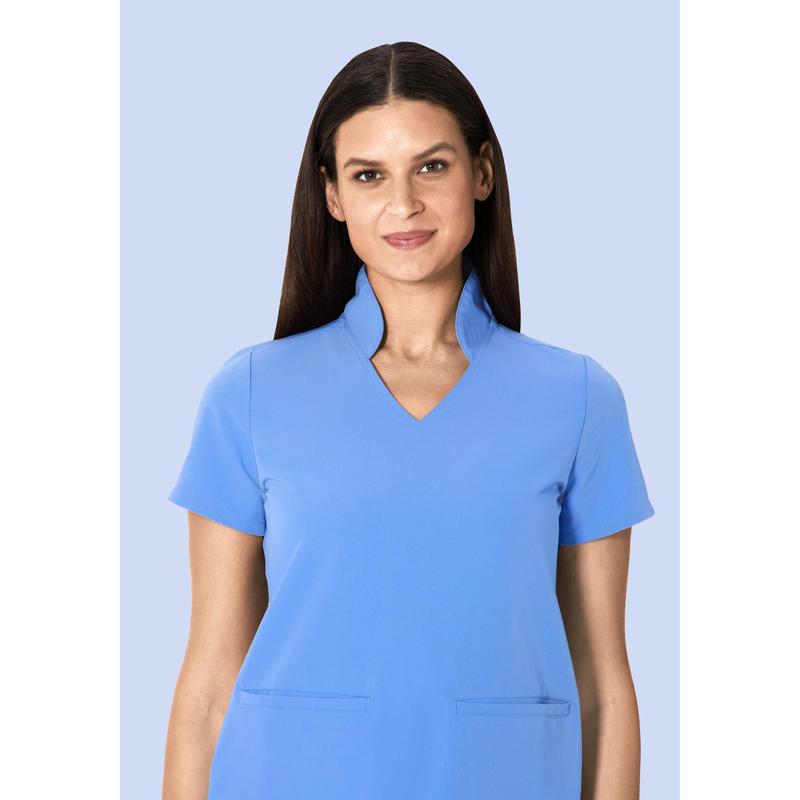 A Limited Edition versatile Multi-Wear Collar scrub top with 6 pockets.