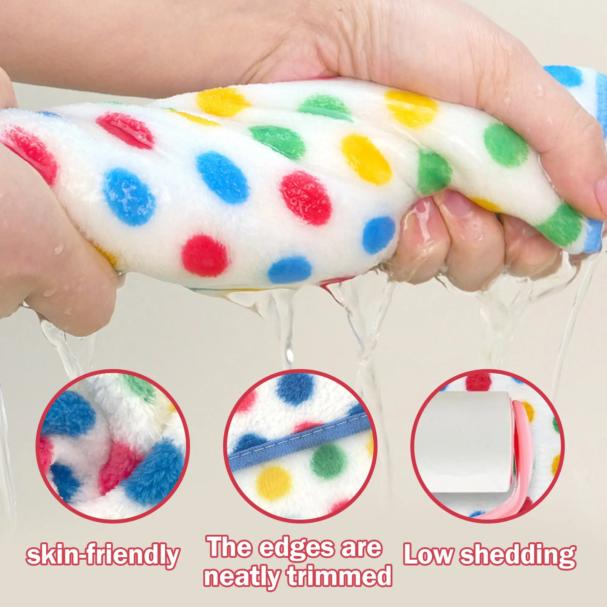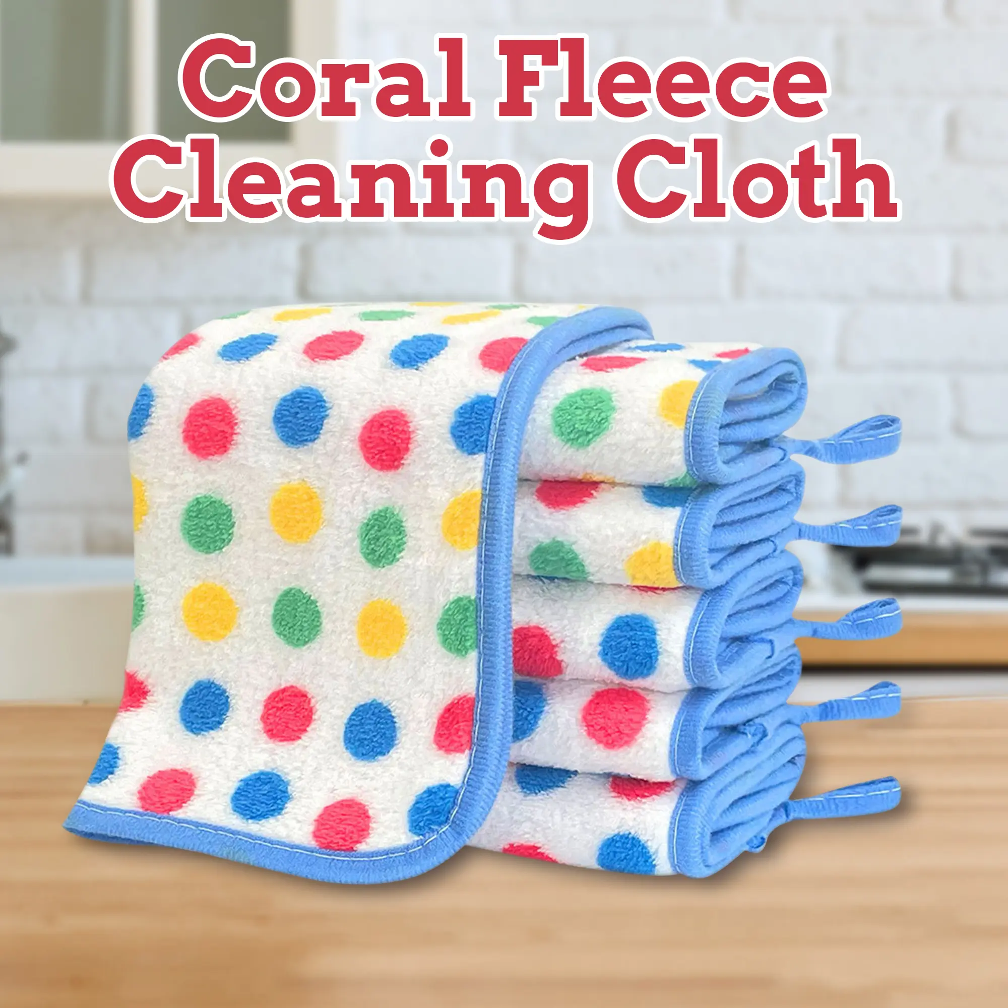 High quality material - The kitchen dishcloths is made of high quality coral fleece fabric, which is naturally sustainable and soft to the touch, and it is not prone to shedding fuzz, you can use them with confidence Craft of weaving - The dish cloths have tight under-weave supports the integrity of the fabric that gives them high absorption and scrubbing power, and the woven hanging ring makes it easy to be hung in the kitchen Colored dot and piping design - Each sewn edge of the cleaning cloth is finished with durable and piping to prevent fraying or ripping during use. The surface of the fabric is designed with colorful dots that can brighten up your kitchen Reusable and durable - The coral fleece dishcloths have a longer lifespan compared to cotton cloths, cellulose cloths and sponges, they are washable, reusable, durable and sanitary, they can be used for a long time Easy to clean - These dishcloths are very easy to clean, you can wash them regularly to keep them clean and hygienic. These cloths have the characteristic of quick-drying, which can prevent the generation of unpleasant odors