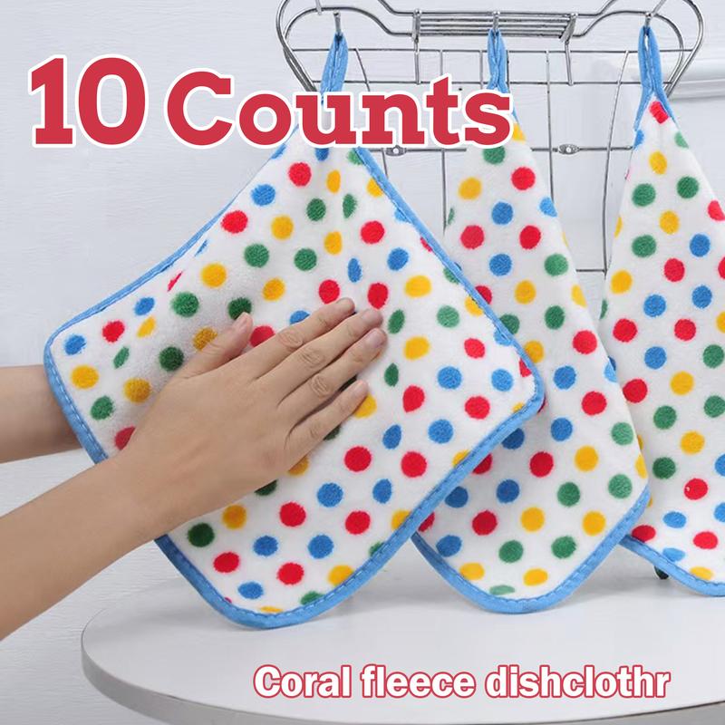 10 Counts Kitchen Dishcloths with Multicolor Dots, Washable Kitchen Cloths Super Absorbent Coral Fleece Cleaning Cloths, Oil - repellent, launderable, lint - free, rapid - drying