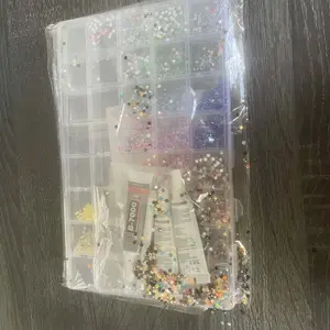 one of the 3 adhesives seems to have been leaking and has dried to the bag. I was still able to open it so hopefully it still works properly. Some of the rhinestones are mixed together so be wary of that when purchasing.