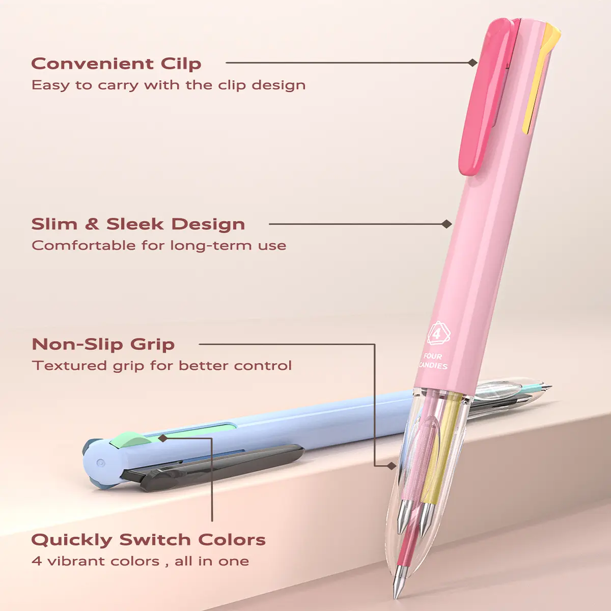 ·4-in-1 Colored Pen: Four Candies multi-colored pens with 4 different ink colors, perfect for note-taking, coloring, organizing, and more. Ideal for home, school, or office use. Simply press to select your favorite color.