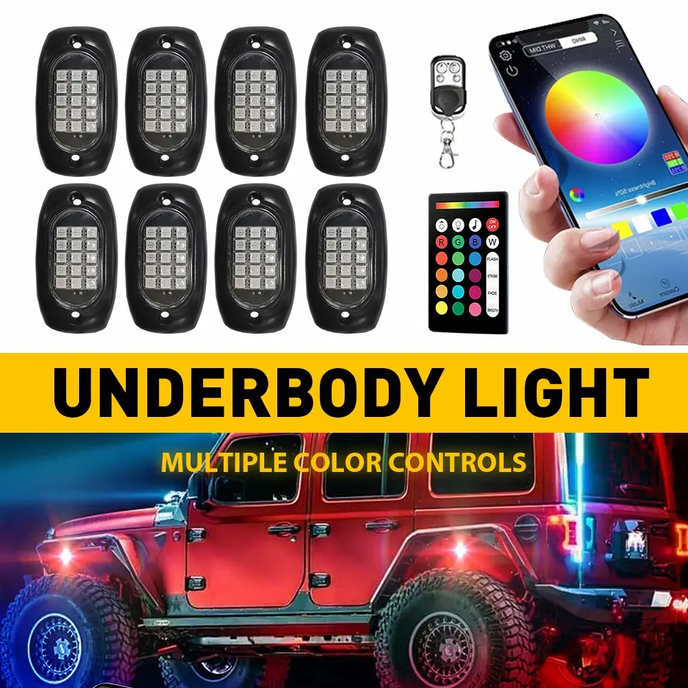 8/10/12/20x RGB LED Rock Lights