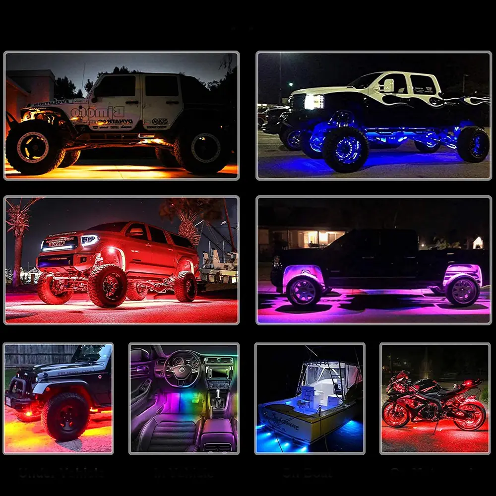 Widely Application & Warranty: Rock lights kits can be widely used in car, off road, truck, ATV, UTV, SUV, ATV motorcycle, boat and so on, also used for interior, dome, neon lights, yacht lights, ect. 2 Types of Mounting included, drill or no drill.