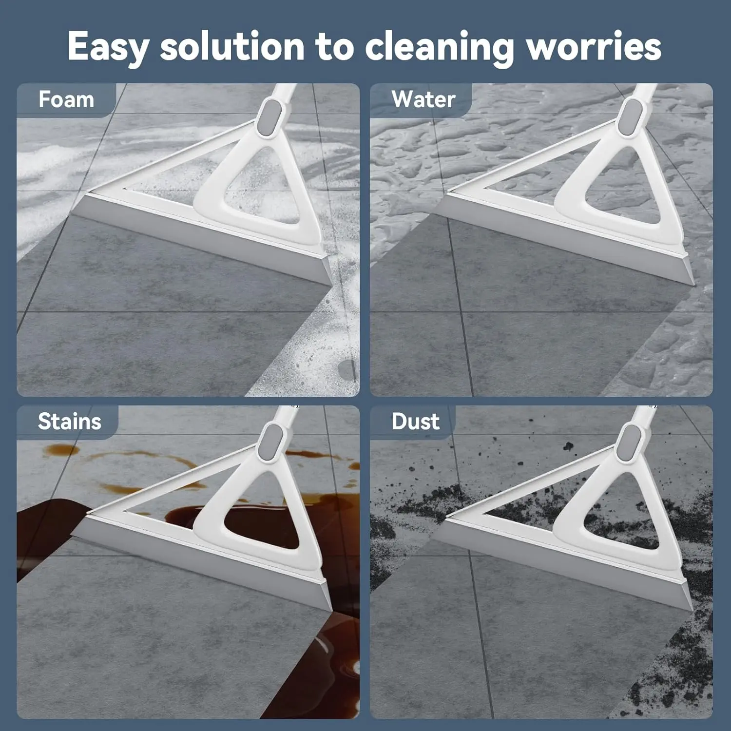 VERSATILE, EFFICIENT, EASY-TO-USE: The Magic Broom is a handy tool for cleaning up sorts of messes, including broken glass, spilled liquids, fine dust, coffee grounds, sugar, and pet and human hair. This Magic Broom for floor can even easily sweep sticky substances like ketchup and cracked eggs. This magic broom not only allows you to clean those hard-to-reach areas while protecting your wrists from , but also easily cleans up bathroom water puddles and kitchen .