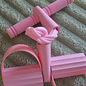 Material: Foam, plastic and really thin rubber bands