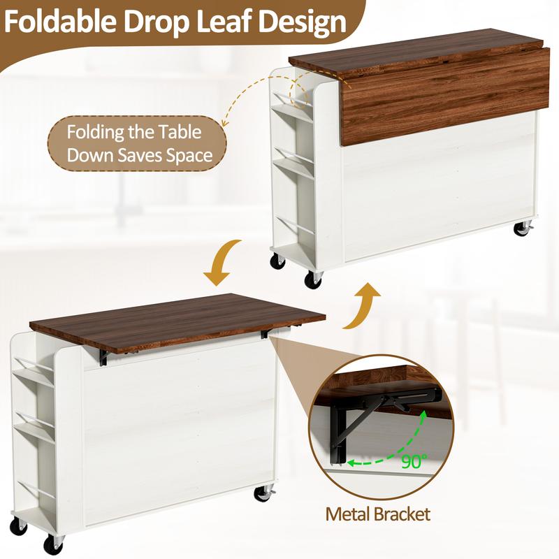 ·【Space-Saver with Instant Breakfast Bar】Don't let a small kitchen limit your culinary dreams! Our ingenious drop-leaf extension instantly doubles your counter space for meal prep, serving, or even a cozy coffee break. When not in use, it folds down seamlessly, reclaiming your precious floor space. Supported by heavy-duty steel brackets, it's rock-solid for all your kitchen tasks.