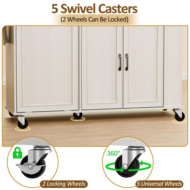 ·【Effortless Mobility with Lockable Stability】Your kitchen, your rules. Glide this kitchen island effortlessly across your floor with 5 smooth-rolling casters (2 with locks). Need to create a temporary cooking station or clean behind it? Simply unlock and push. When it's time to chop or dine, engage the locks—it stands firm and steady, providing a safe, wobble-free surface.