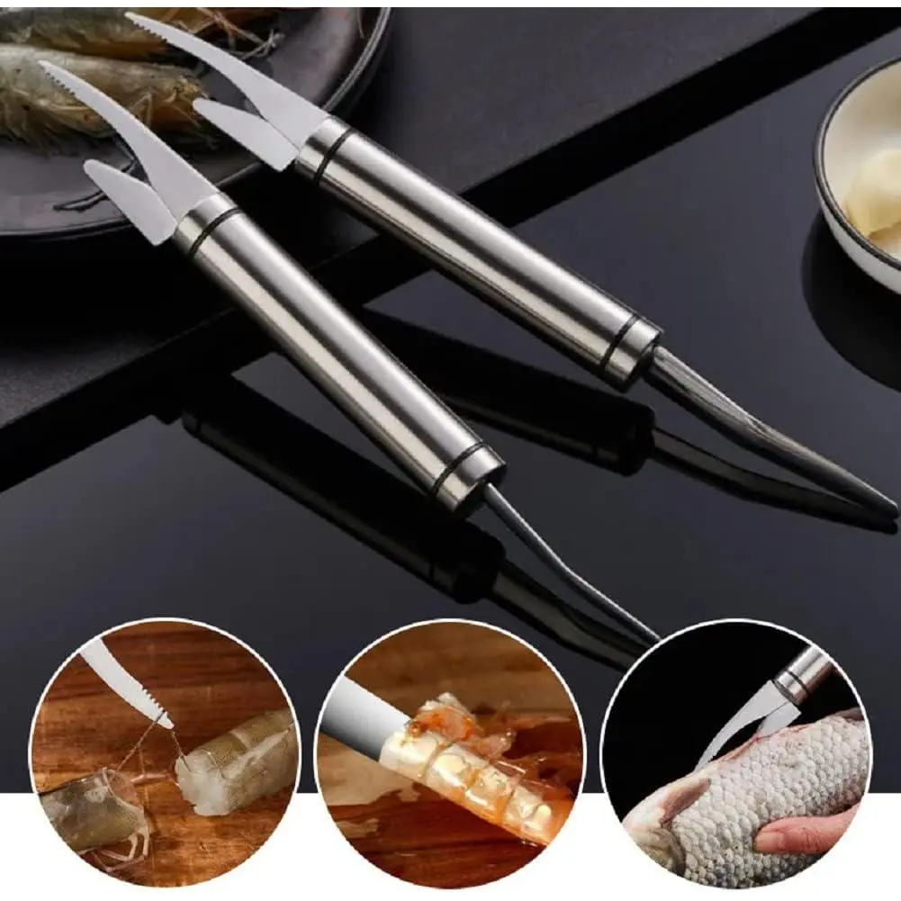 2PCS - 5 In 1 Multifunctional Shrimp Line Fish Maw Knife Stainless Steel Shrimp Deveiner Tool Multifunctional Fast Shrimp Peeler Fish Scale Remover Kitchen Fish and Shrimp Duck Intestine Cleaner