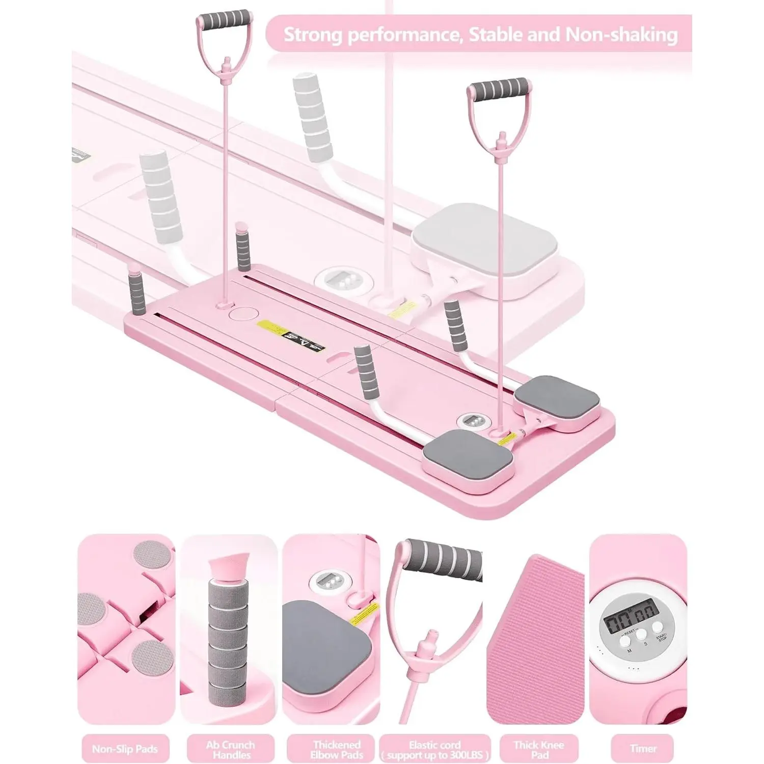 Kneeling pads included with each flat Ab Roller provide extra comfort and support.Designed for users who want to take the pressure off their knees during their workout without having to purchase an additional one.A timer is also included as well as a beginner's movement guide.