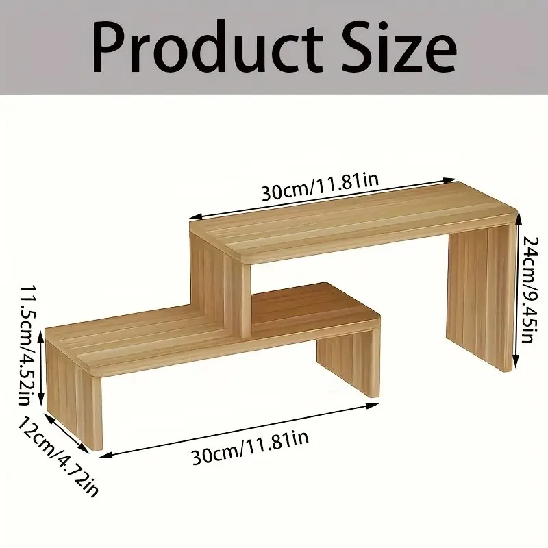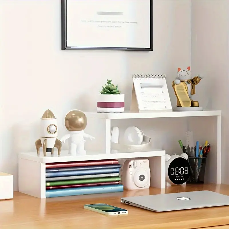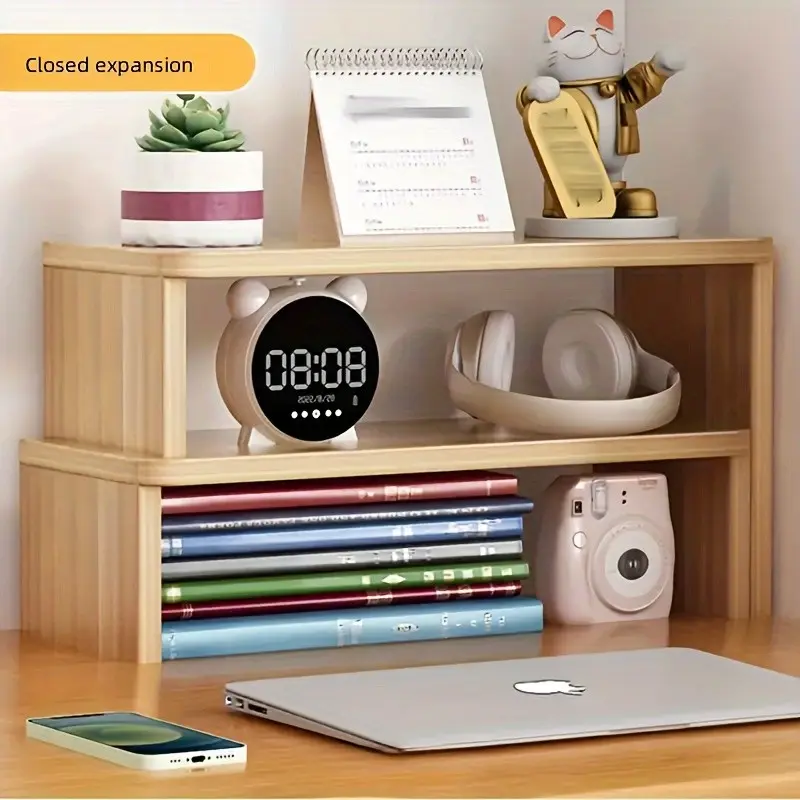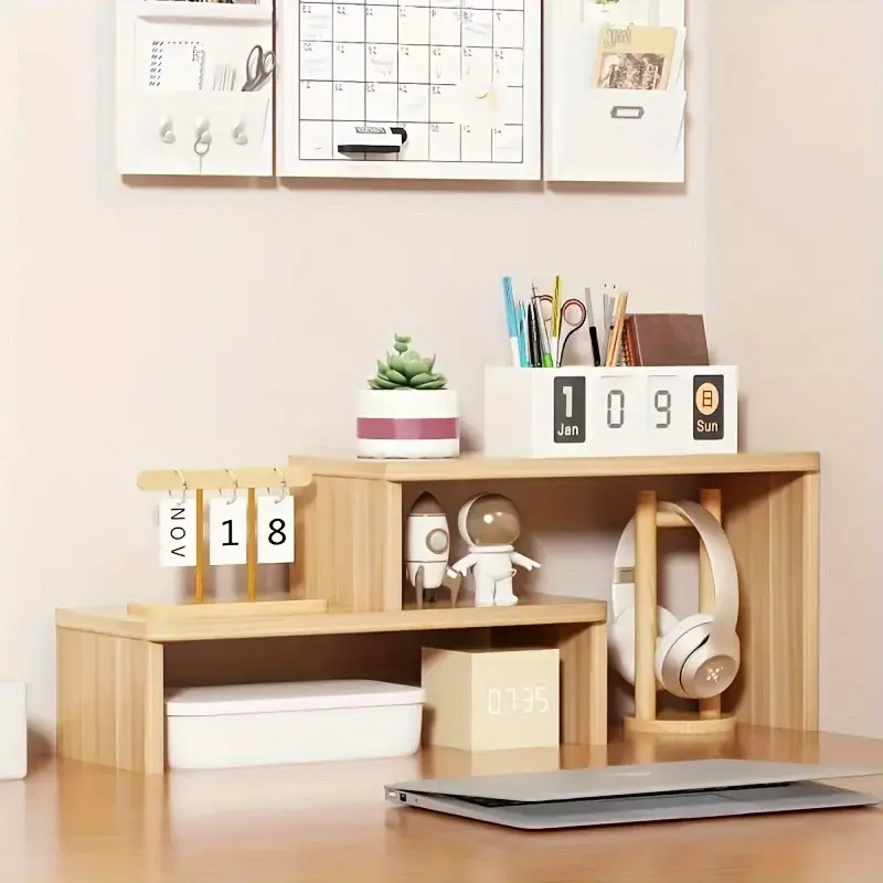 Multifunctional Adjustable Wooden Desktop Storage Rack Organizer, Perfect for Desk Office Living Room, Wood Color