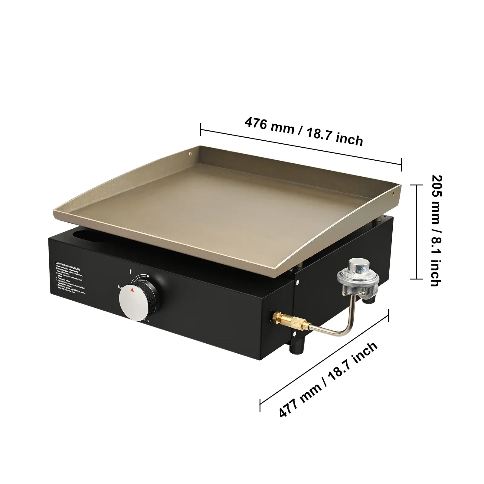 ·Convenient Outdoor Cooking: This portable camping griddle is perfect for preparing meals outdoors, offering a compact tabletop design and a protective lid to keep the cooking surface clean. It comes with a regulator and hose, allowing easy connection to a 1 lb/0.45 kg gas canister or propane tank (not included) for hassle-free setup.