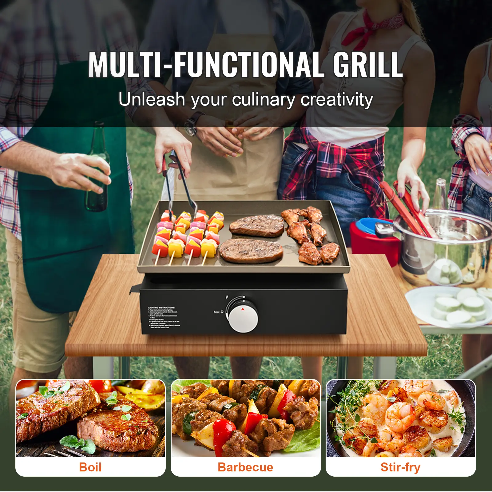 Experience the versatility of a 17-inch (431.8mm) portable propane griddle, perfect for grilling, frying, sautéing, and searing all at once. This griddle is an excellent choice for cooking a variety of meals during family get-togethers, celebrations, or relaxed outdoor dining.