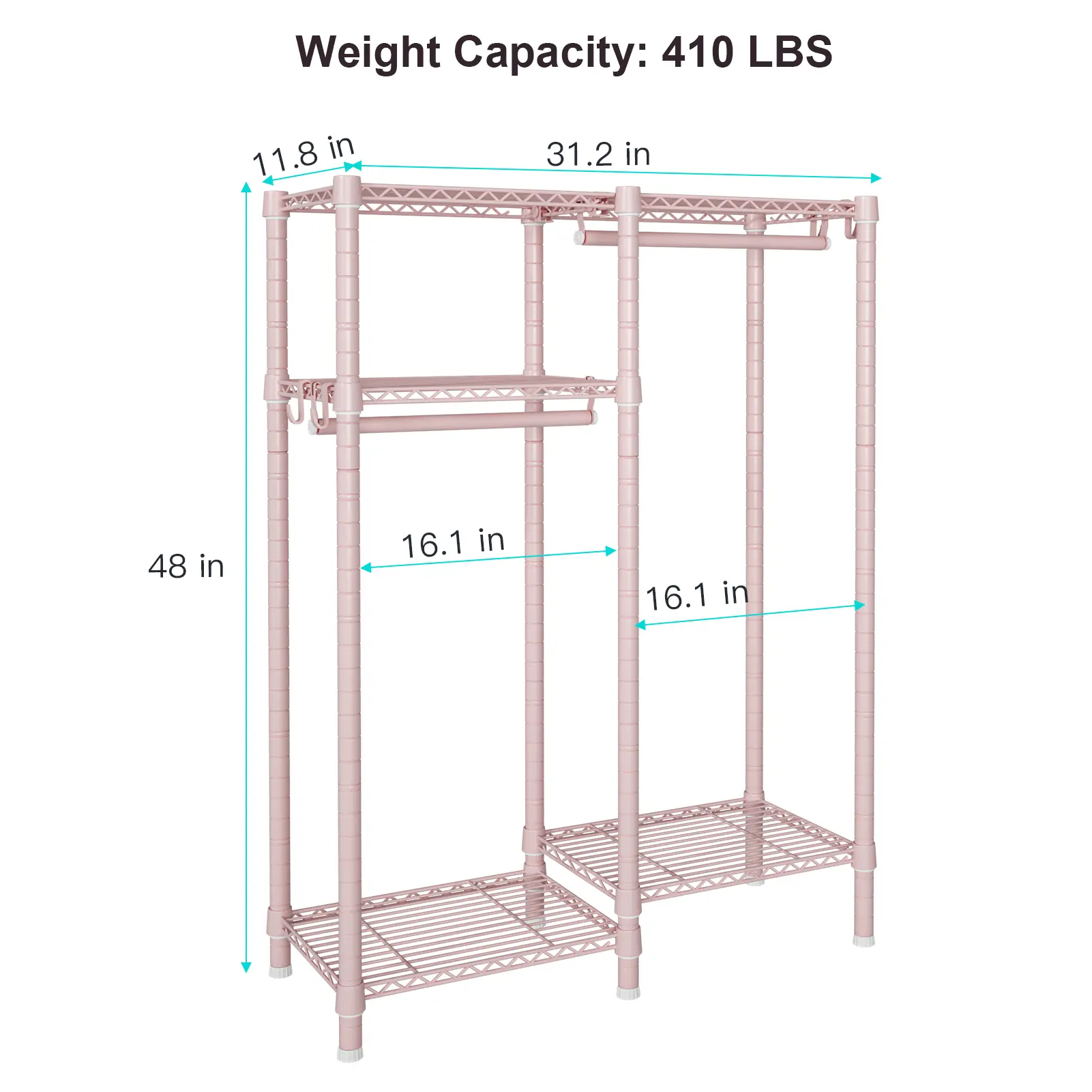 Dimensions & Weight Capacity - Overall Dimensions: 31.2 x 11.8 x 48 inches. - Weight Capacity: Each wire shelf can hold up to 40 lbs or more.