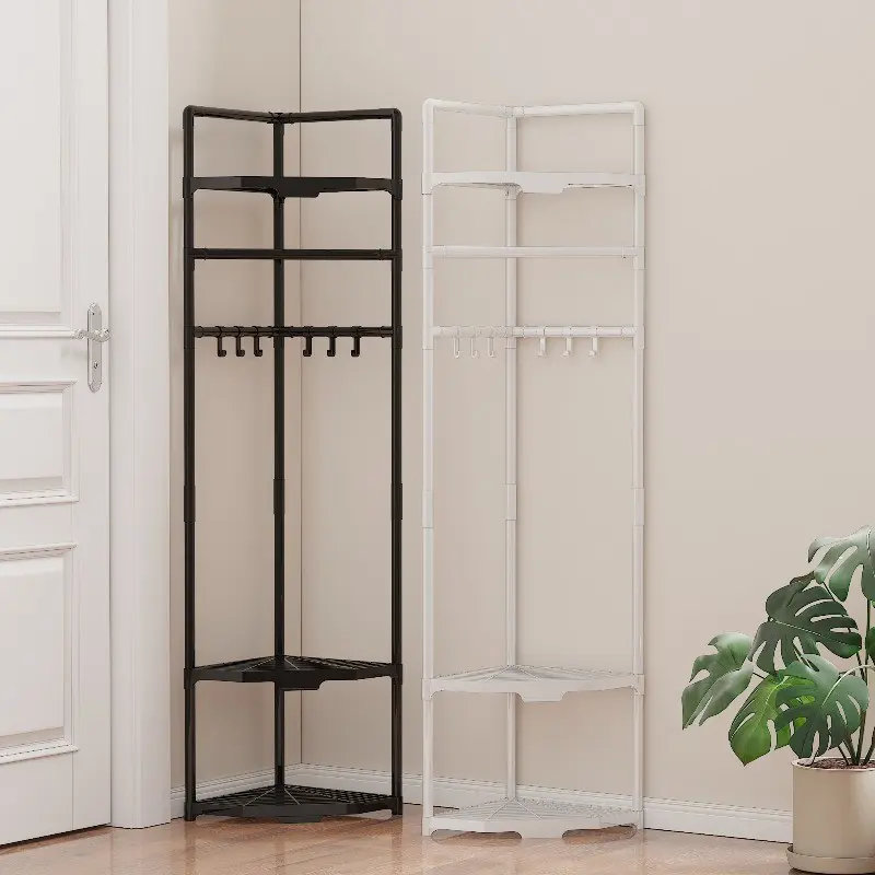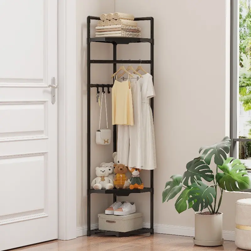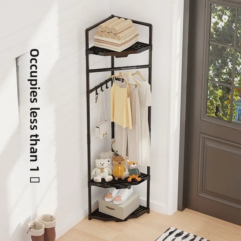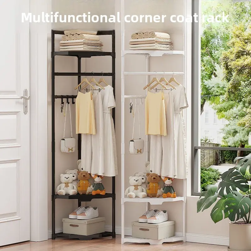 Multifunctional Corner Clothes Rack, Frame Storage Rack, Metal Material, Stainless Steel Finish, Space Saving, Ideal for Bedroom Office Retail, Portable Plastic Accessories
