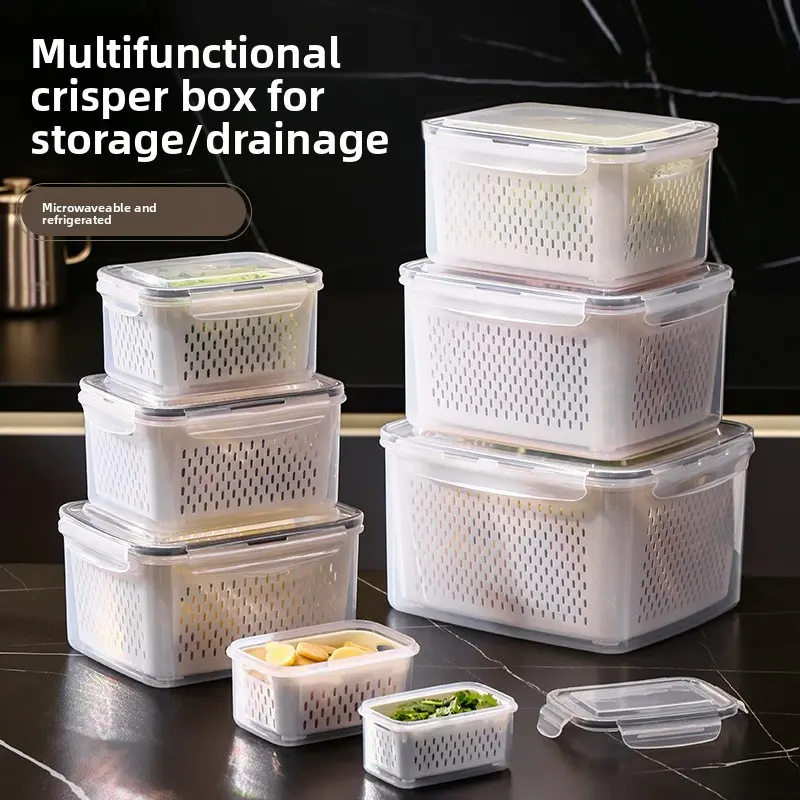 Multifunctional Crisper Box Set for Storage Drainage Microwaveable Airtight Leakproof Stackable Food Containers Ideal for Meal Prep Organization Foam Hinged Lid Container Sealing Bag Organizer with Cutter Compartmented Meal Prep Containers wrap bags fruit