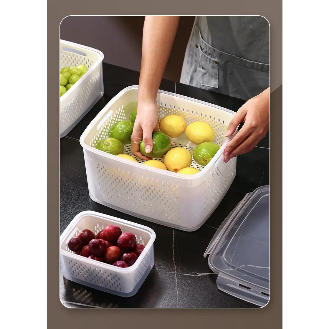 A complete set of multi-size containers to fit all your needs-from small snacks to large family-sized portions.The clear body lets you see contents instantly.