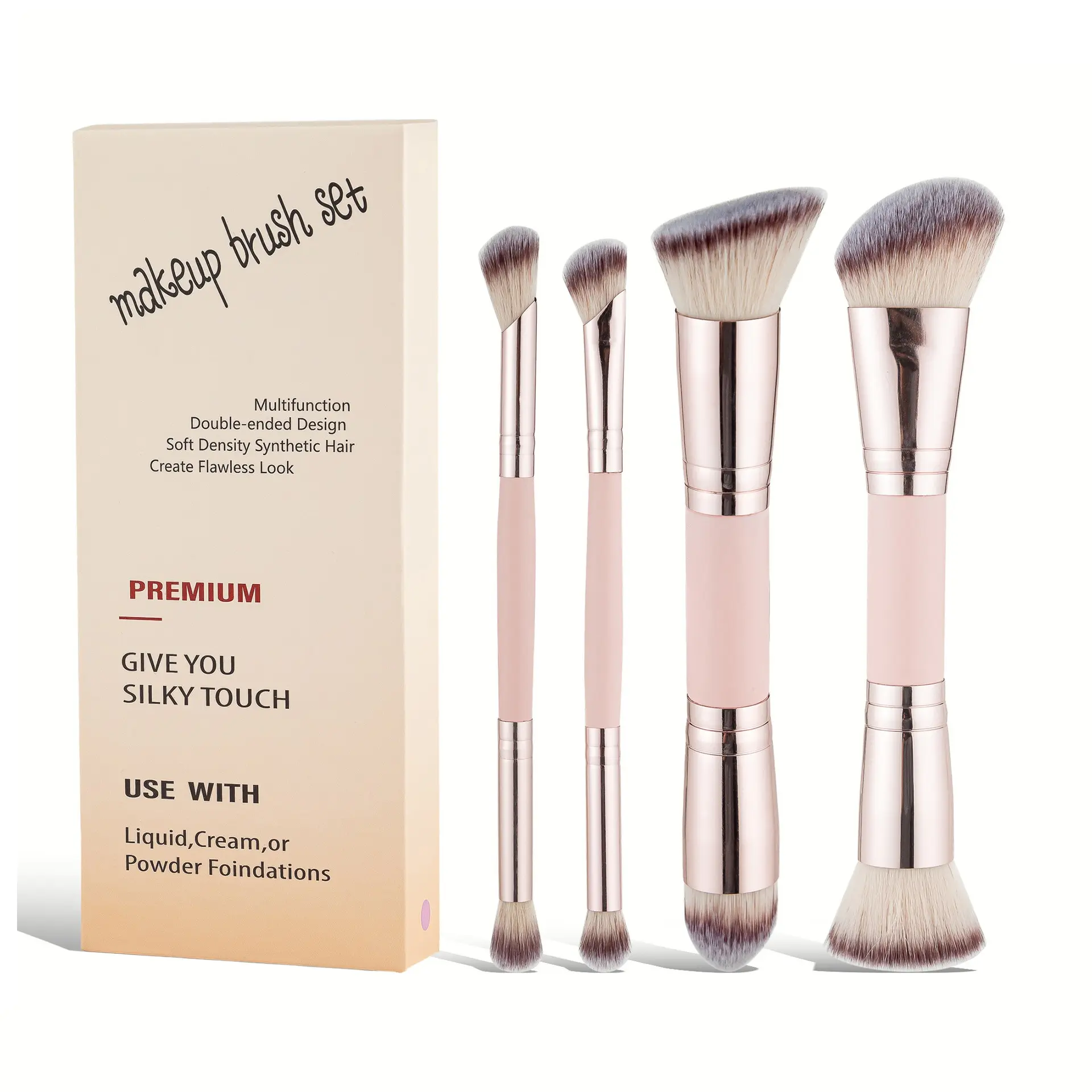 Multifunctional Twin-headed Makeup Brush Set (4 Pcs), Premium Synthetic Bristles Suitable for Liquid/Cream/Powder Foundations, Silky Touch for Flawless Makeup, Travel-friendly Makeup Tool, Soft Cosmetic Brushes, Ideal Gift for Women & Girls