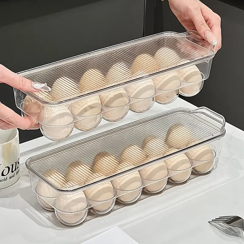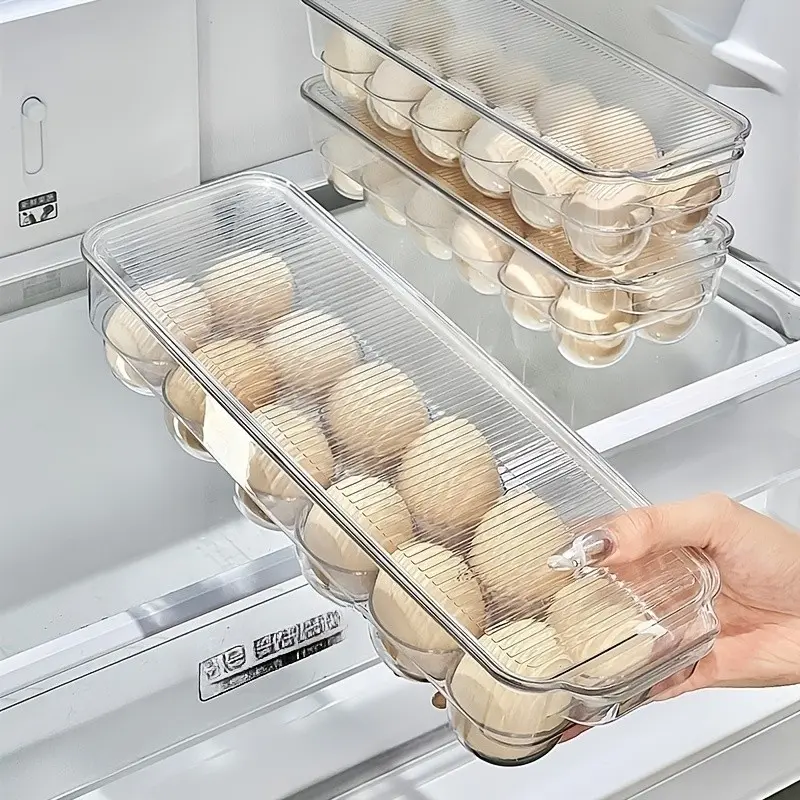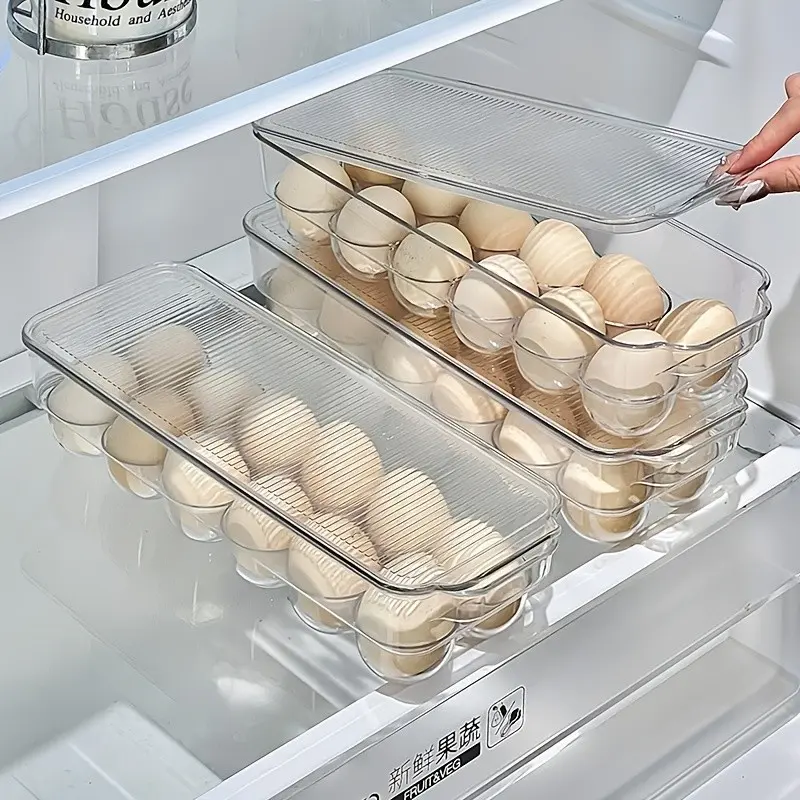 Multifunctional Egg Storage Box for Refrigerator, Transparent Divided Egg Holder, Space-Saving Design, Durable & Easy Clean