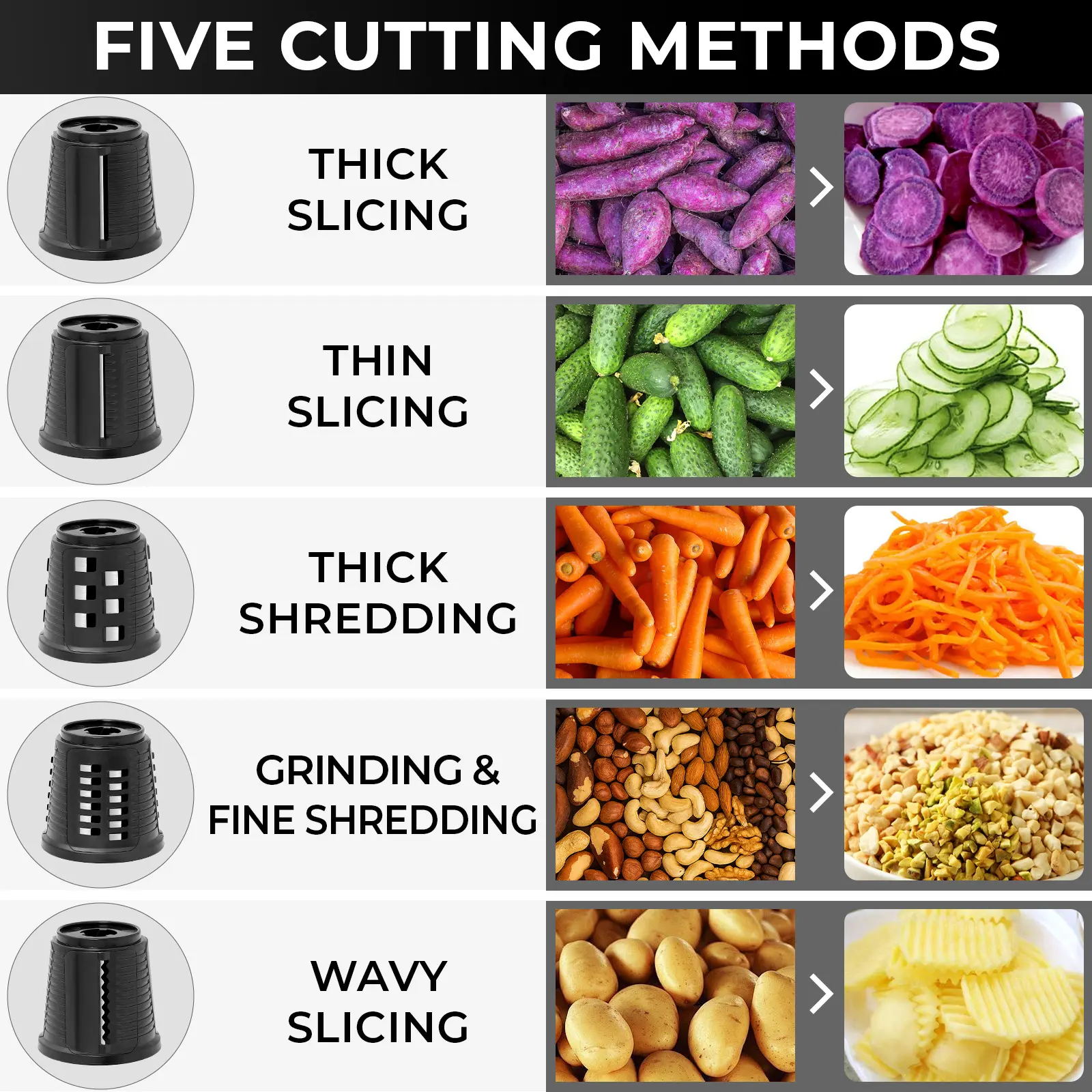·Chop, Slice, Mince: Handles various food preparation needs.