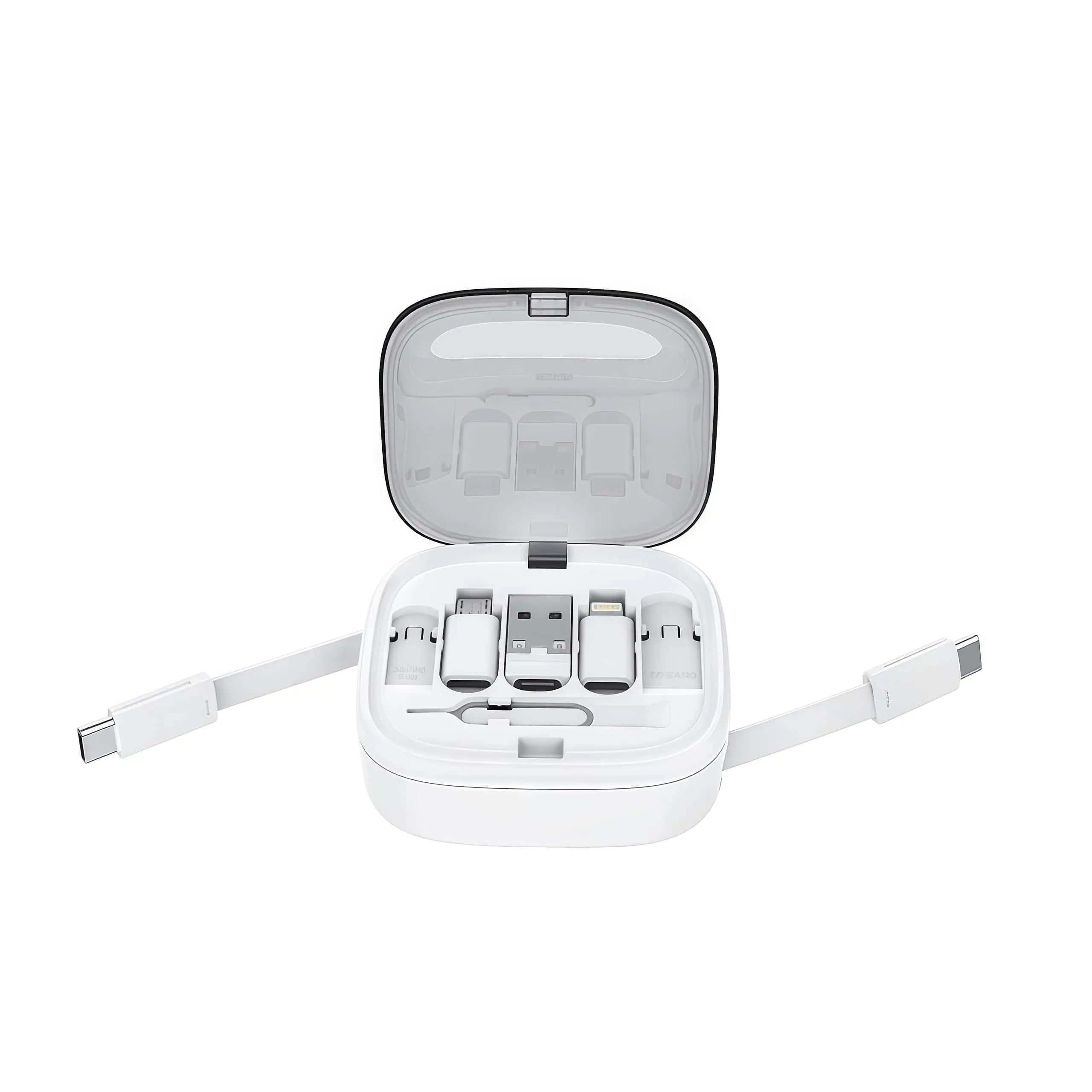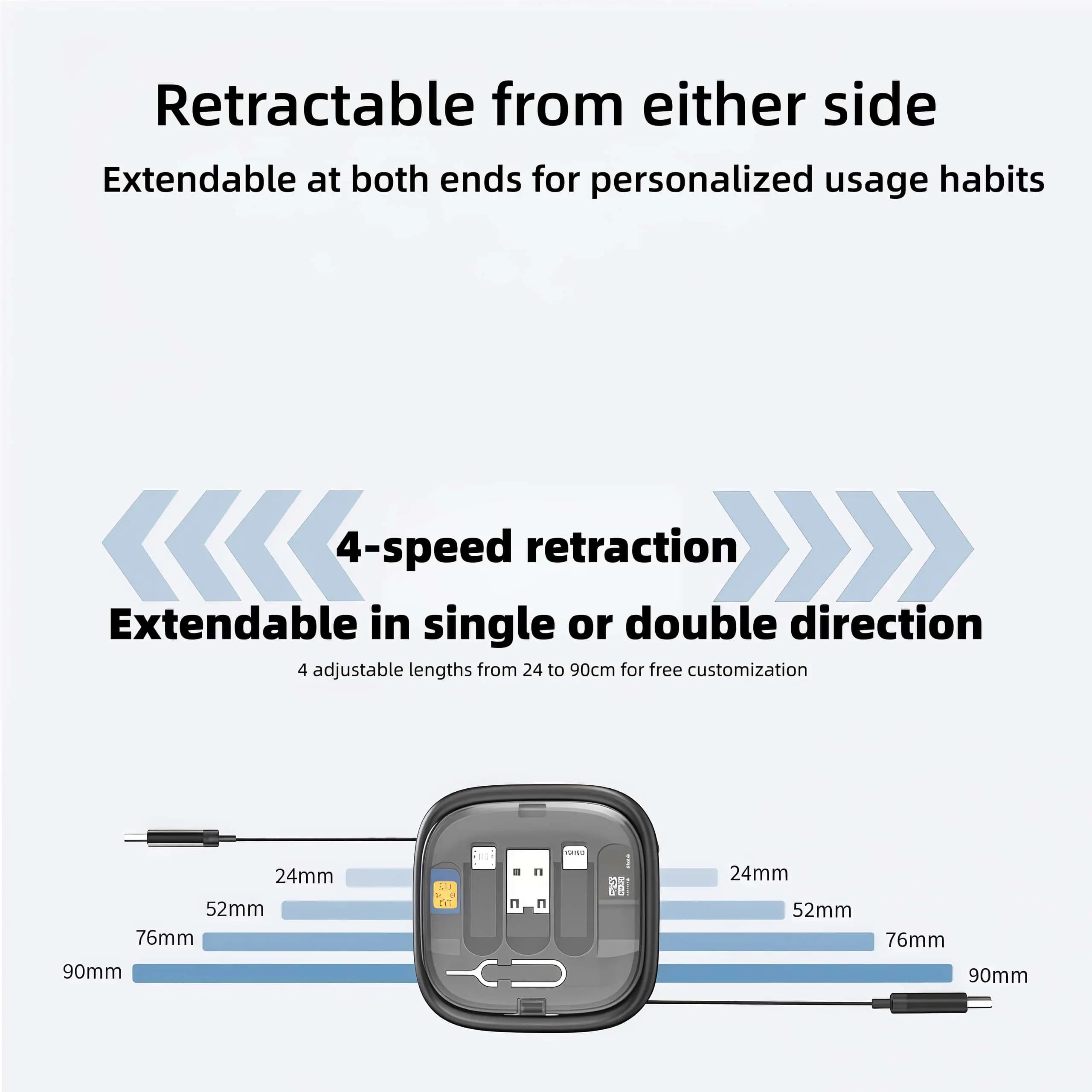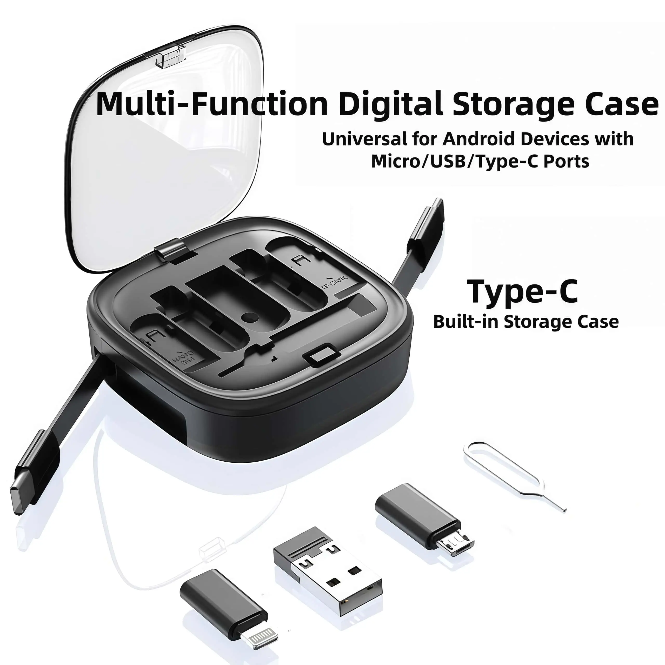 Multifunctional Fast Charging Data Cable Retractable Cable Storage Box | Travel Data Cable Set with Multiple Adapters and Universal Charging Port Compatibility, Retractable Travel Charging Cable