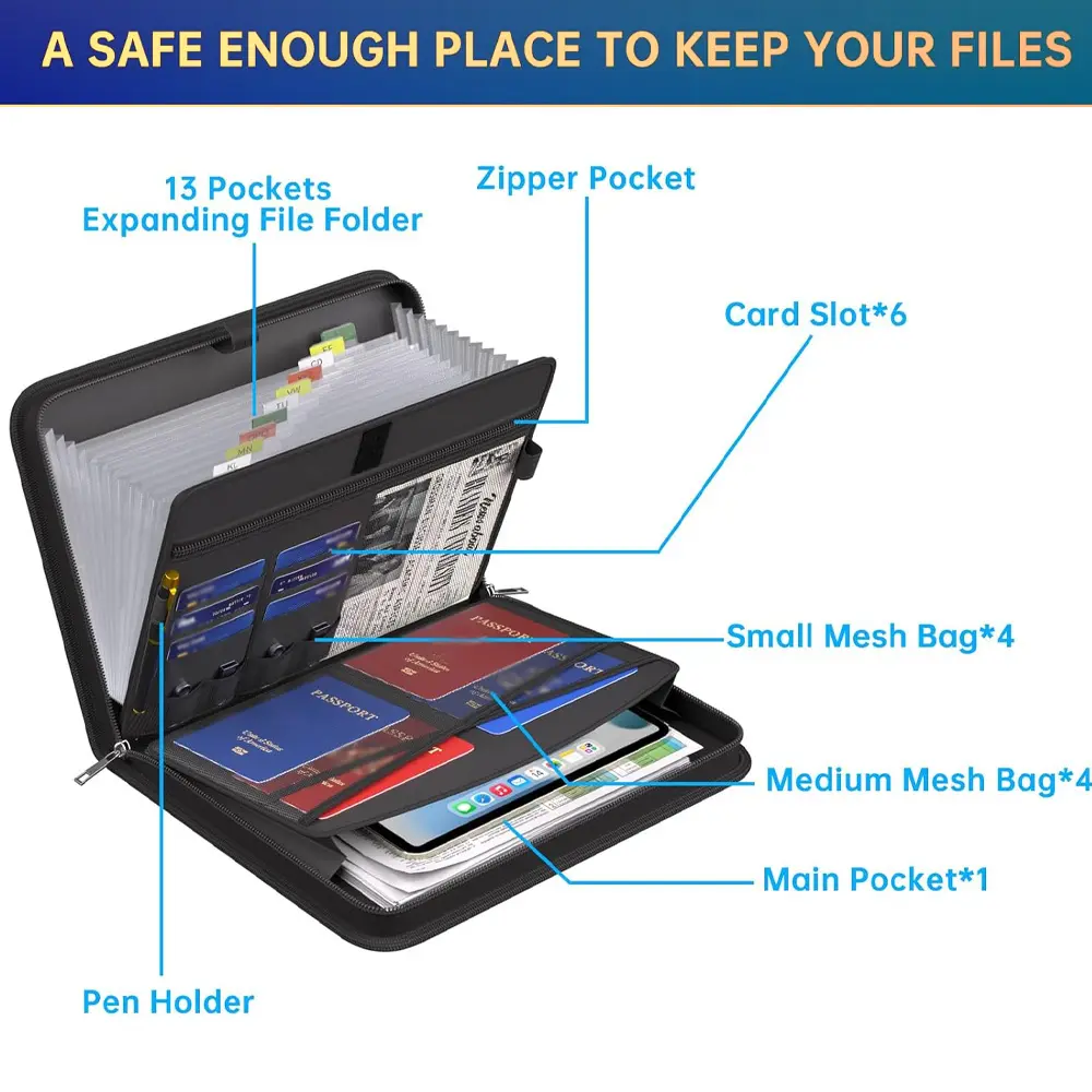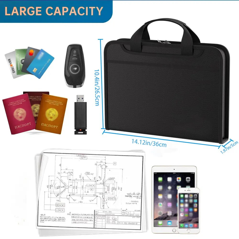 ·Black Fireproof Design: This handheld file folder is fireproof, ensuring the safety of your A4 documents and passports. 🌟