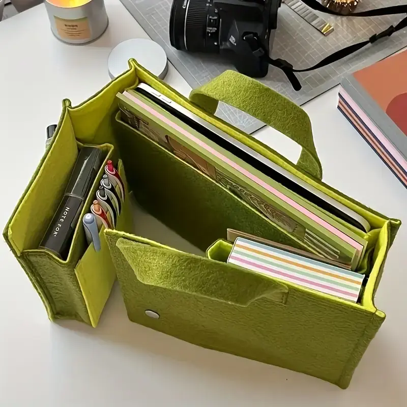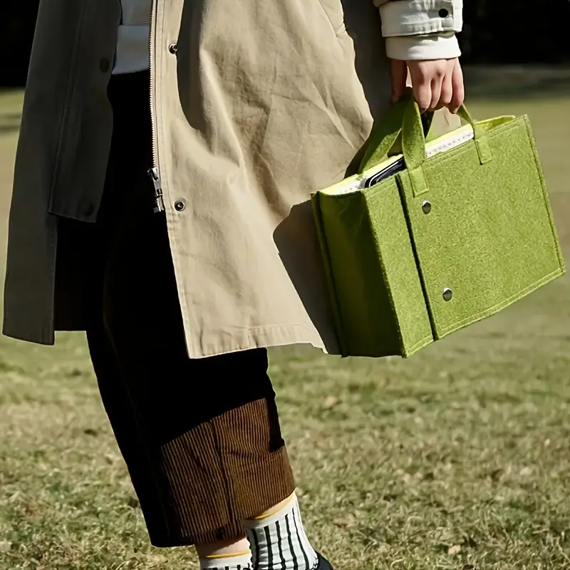 This backpack is versatile and can be used for various purposes. Whether for daily commutes or travel, it offers convenience and functionality. The green felt material adds a stylish touch to this practical bag.