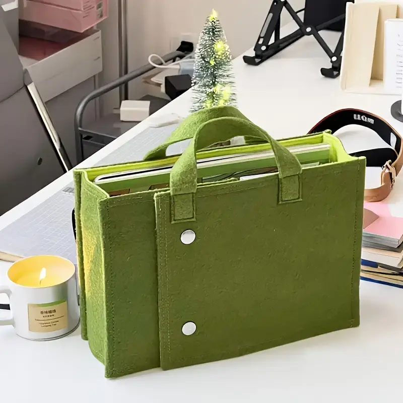 This multifunctional green felt backpack is perfect for daily use. It features a foldable design, making it compact and easy to carry. The bag includes a removable shoulder strap, offering versatility as a crossbody bag. Ideal for unisex travel, it serves as a practical laptop bag.