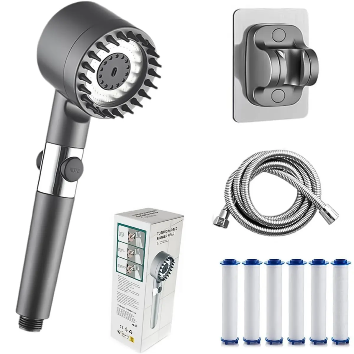 Multifunctional Handheld Booster Shower, Shower Head With Filter, Cold Mist Shower, Shower Head With One-Touch Water Shutoff Switch And Water Gun Cleaning Mode.Bathroom Accessories, Household Products