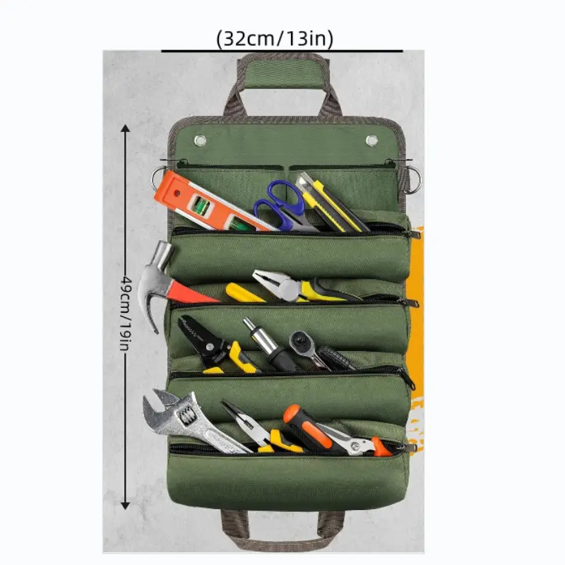 Multifunctional Hardware Installation Tool Roll Bag, Thickened Portable Handheld Durable Roll Bag, Essential Workshop Accessory, Convenient Tool Pockets
