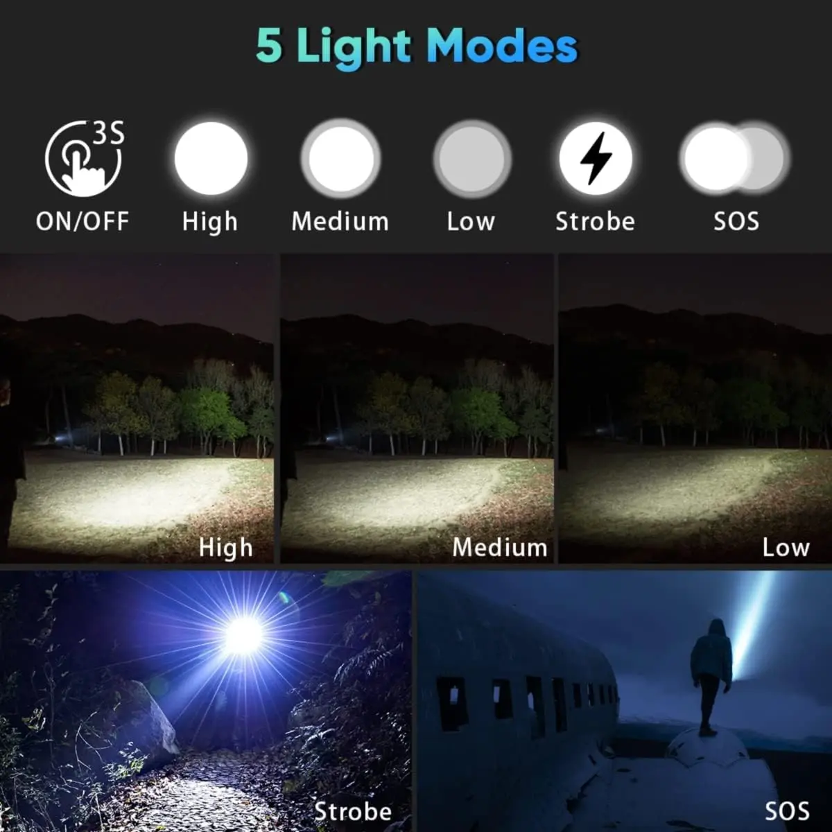 Multifunctional High Brightness Flashlight, Rechargeable Battery, 5 Lighting Modes, Outdoor Cycling, Camping, Hiking, Home Illumination
