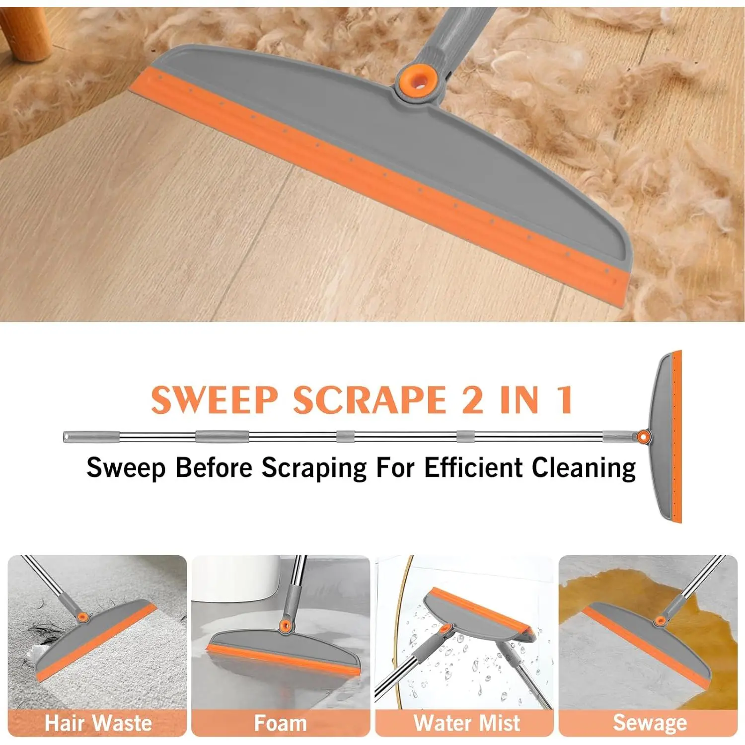 Multifunction Magic Broom, 54 Inch Adjustable Long Handle Silicone Floor Squeegee Broom, Sweep and Scrape 2 In 1 Household Cleaning Brooms for Floor, Bathrooms, Kitchens, Showers, Tile, Pet Hair,Glass