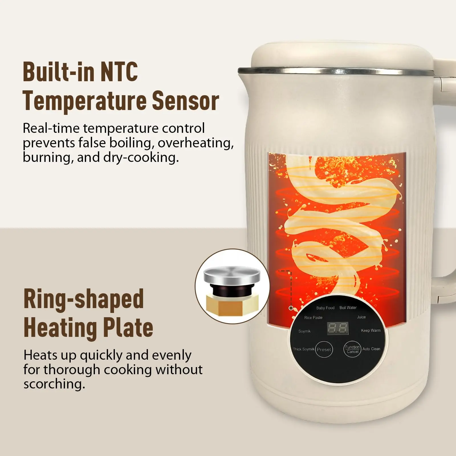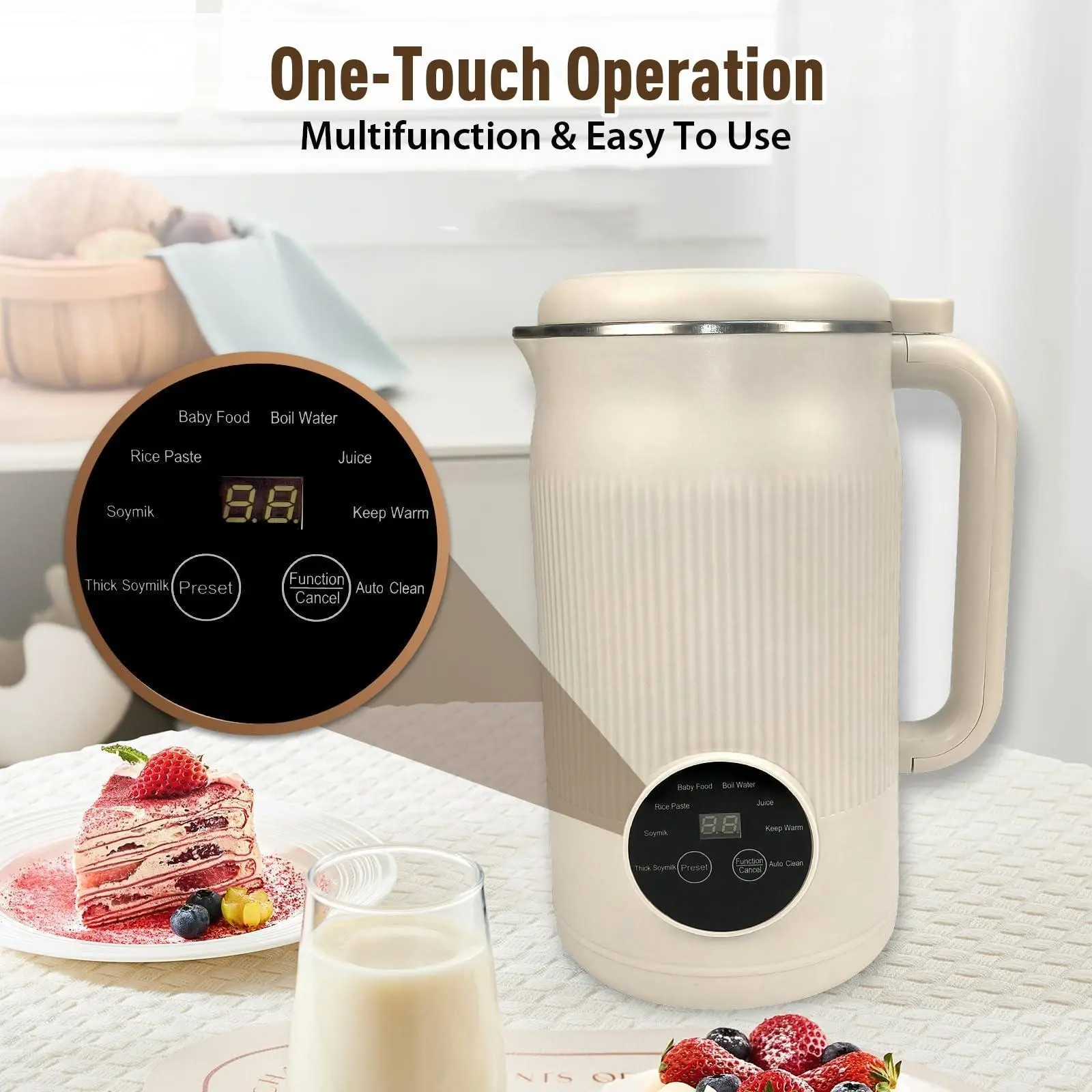 ·Convenient Auto-Clean & 12H Preset Timer – One-touch cleaning saves you time after use. With a 12-hour preset timer, you can schedule drinks like hot soymilk or nutritious soups in advance and enjoy them fresh anytime.