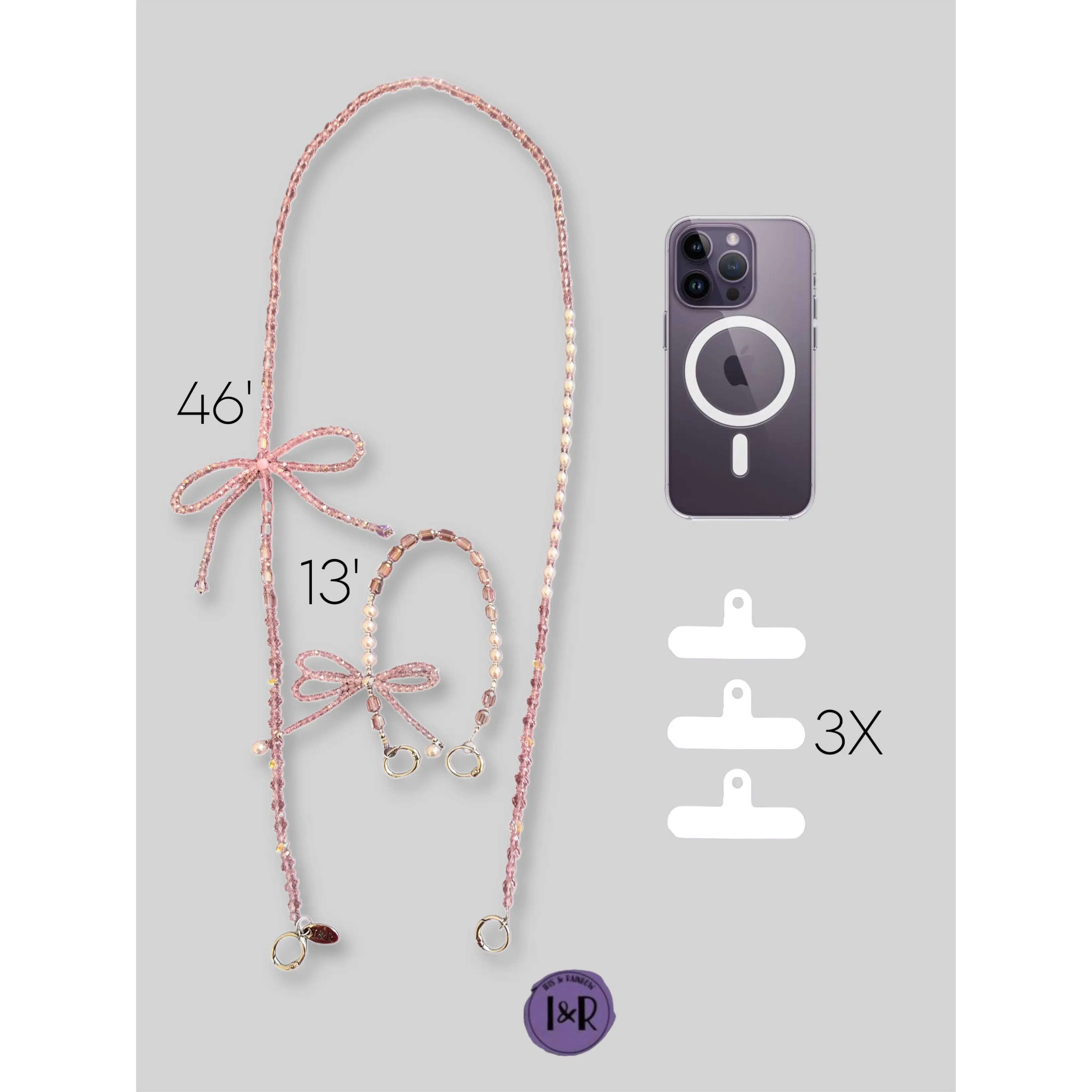 So pretty and so versatile! She's a phone chain, a crossbody strap, a long phone chain, you can use her to hold the carryall, PLUS and trio bags!