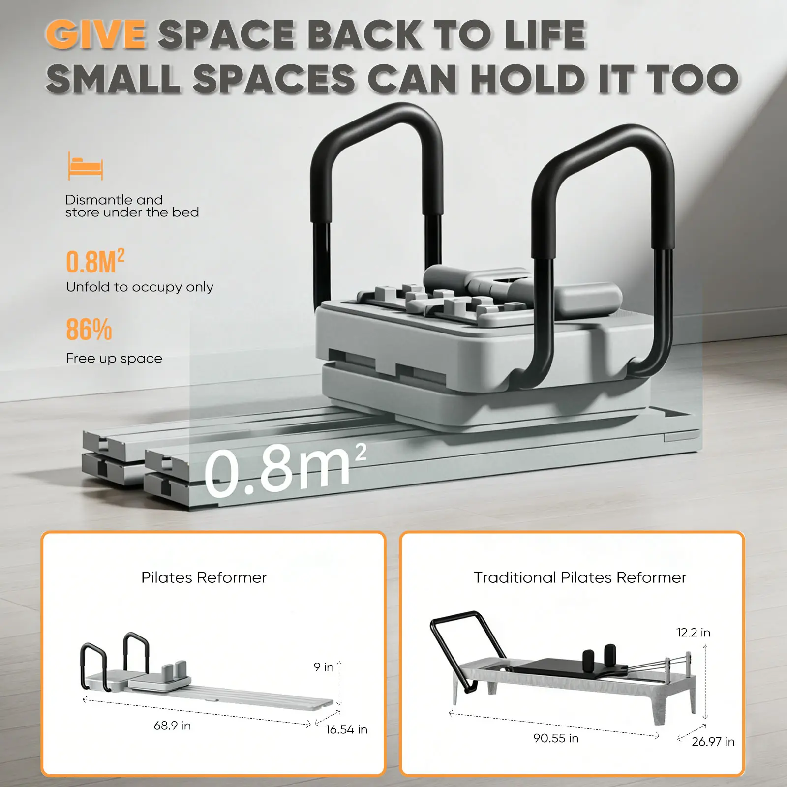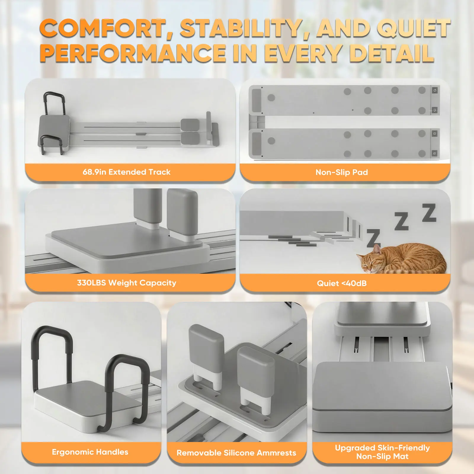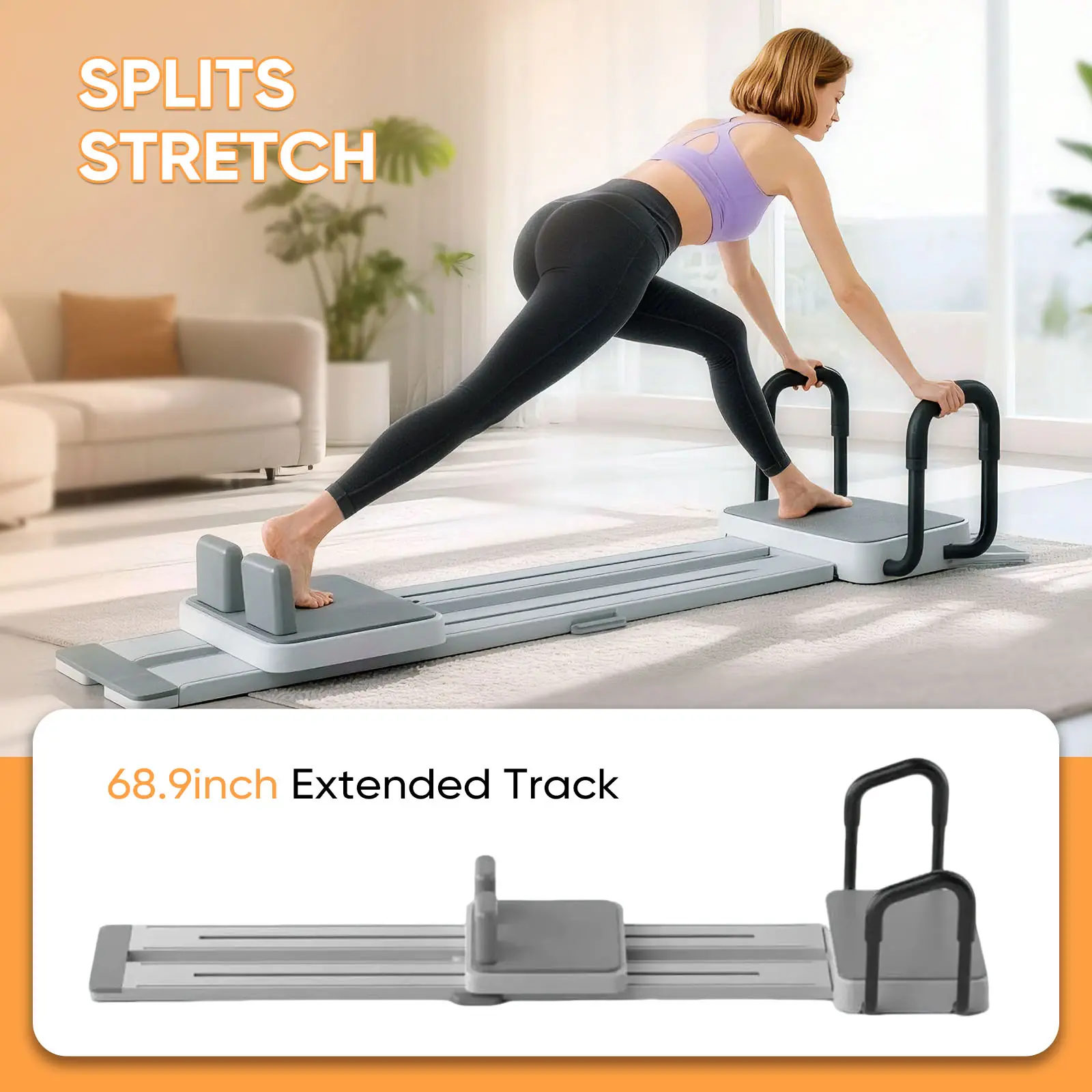 ·【66.9'' Extended Track & Superior Weight Capacity】 Our extended Portable Pilates Reformer features a track that comfortably fits most users. With a solid 350lbs weight limit, it provides a stable, secure platform for dynamic full-body workouts, accommodating various body types and intensity levels