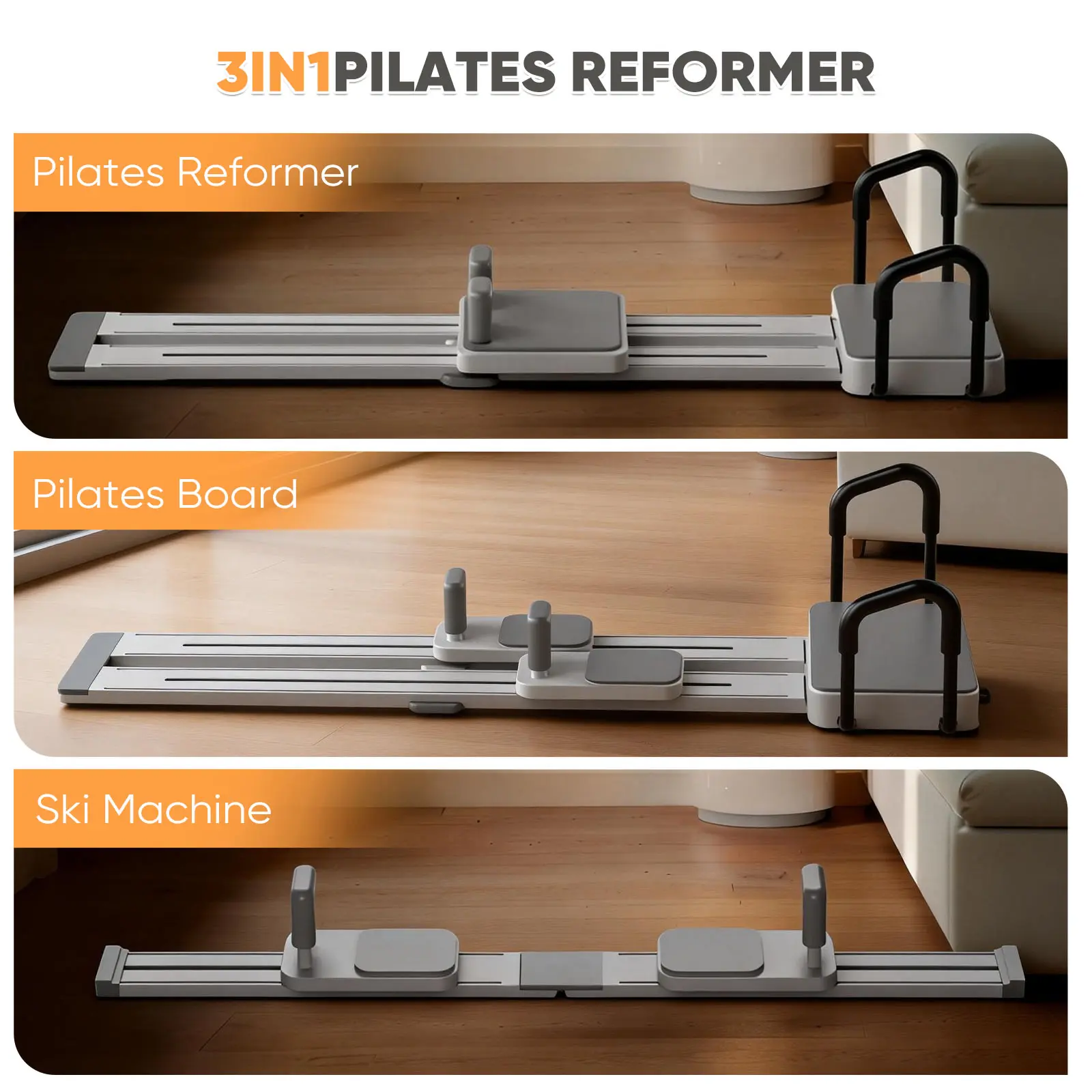 ·【3 in 1 Multifunctional Design】 Transform your home pilates reformer into a Pilates bed or a ski machine with its versatile design. This multifunctional approach allows for diverse training styles, targeting everything from strength to cardio in one compact, adaptive machine