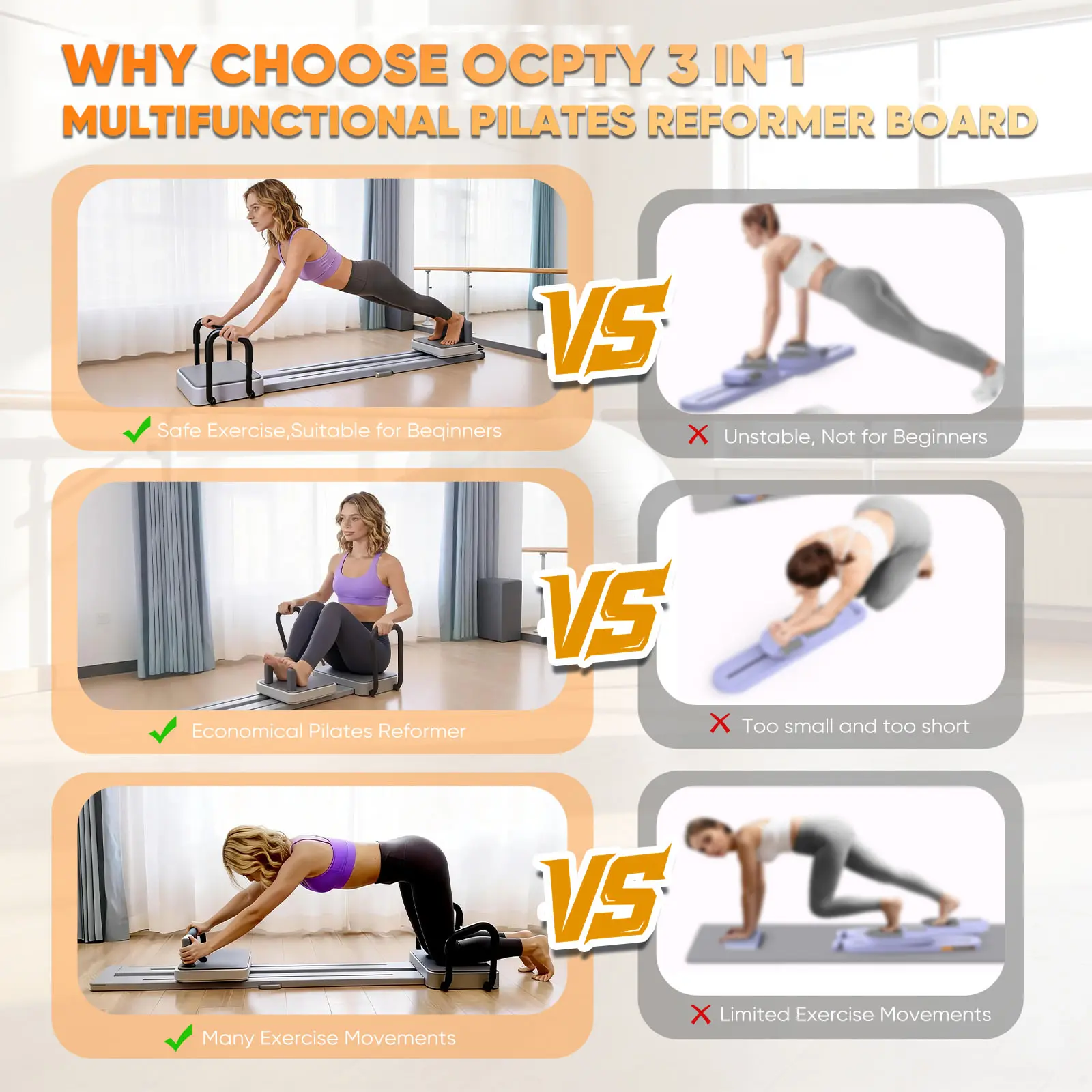 ·【Portable for Use Anywhere】 Take your fitness routine anywhere with our lightweight at home pilates board. Its compact design makes this pilates machine ideal for home, office, or outdoor use, enabling you to perform effective workouts while saving storage space