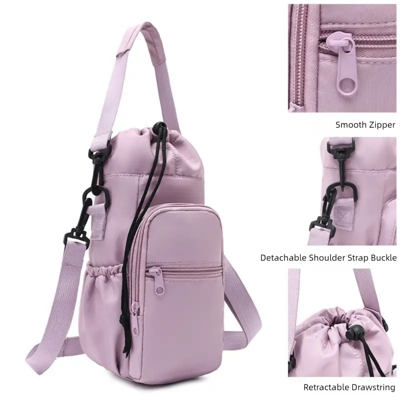 Multifunctional Portable Lightweight Compact Water Bottle Bag with Adjustable Strap Thermal Mugs Insulated Protective Cover Phone Pocket Outdoor Cycling Sports Travel Bags