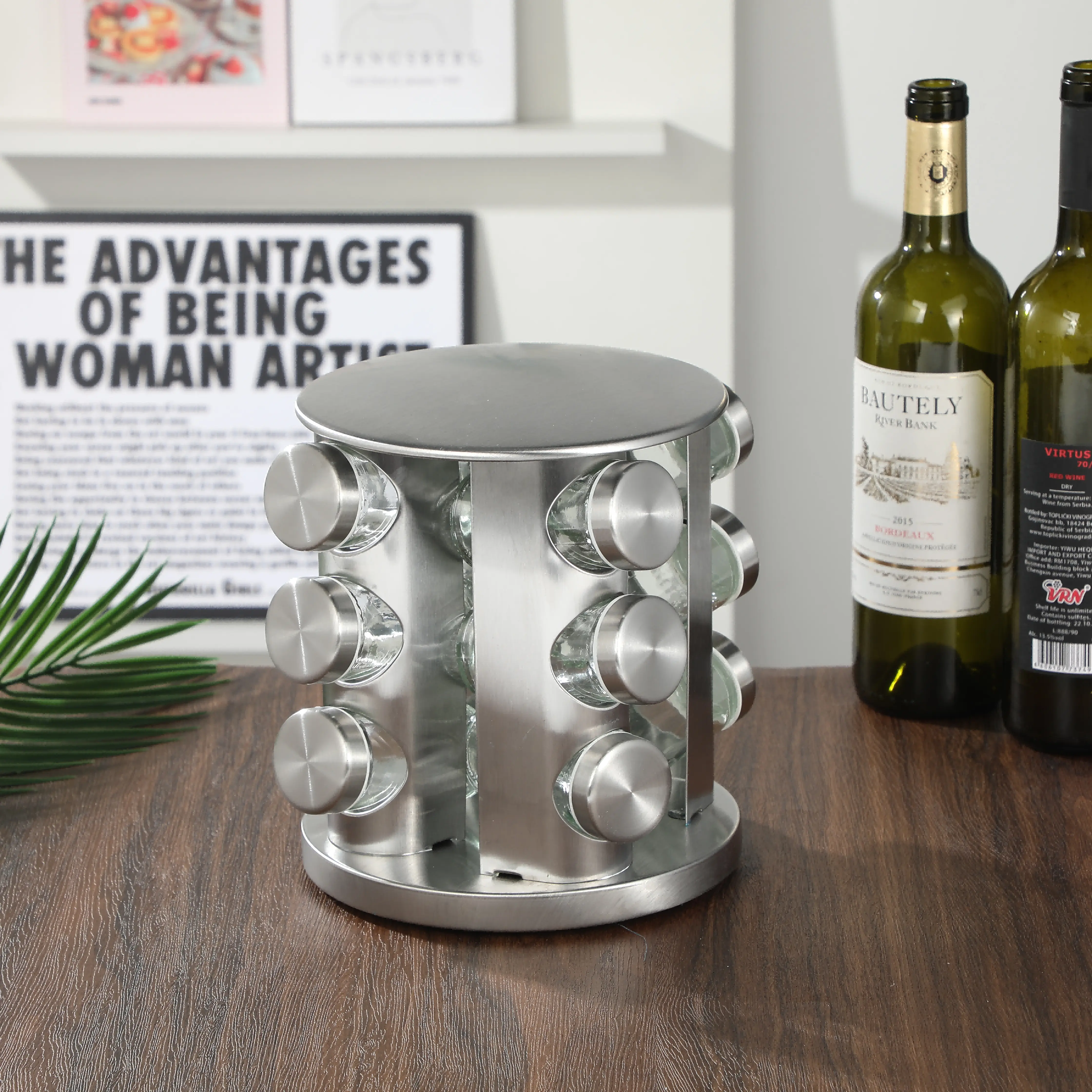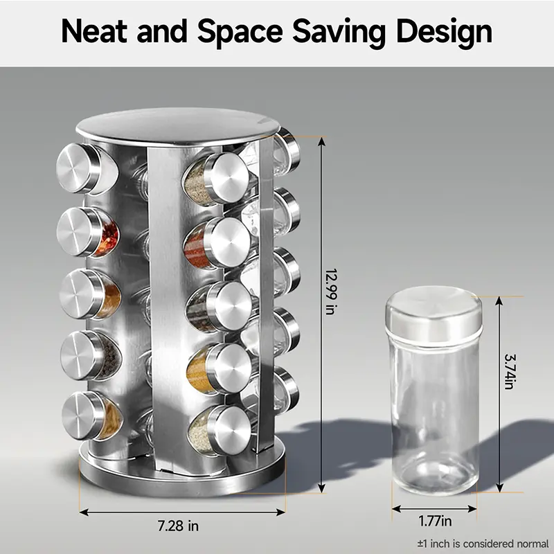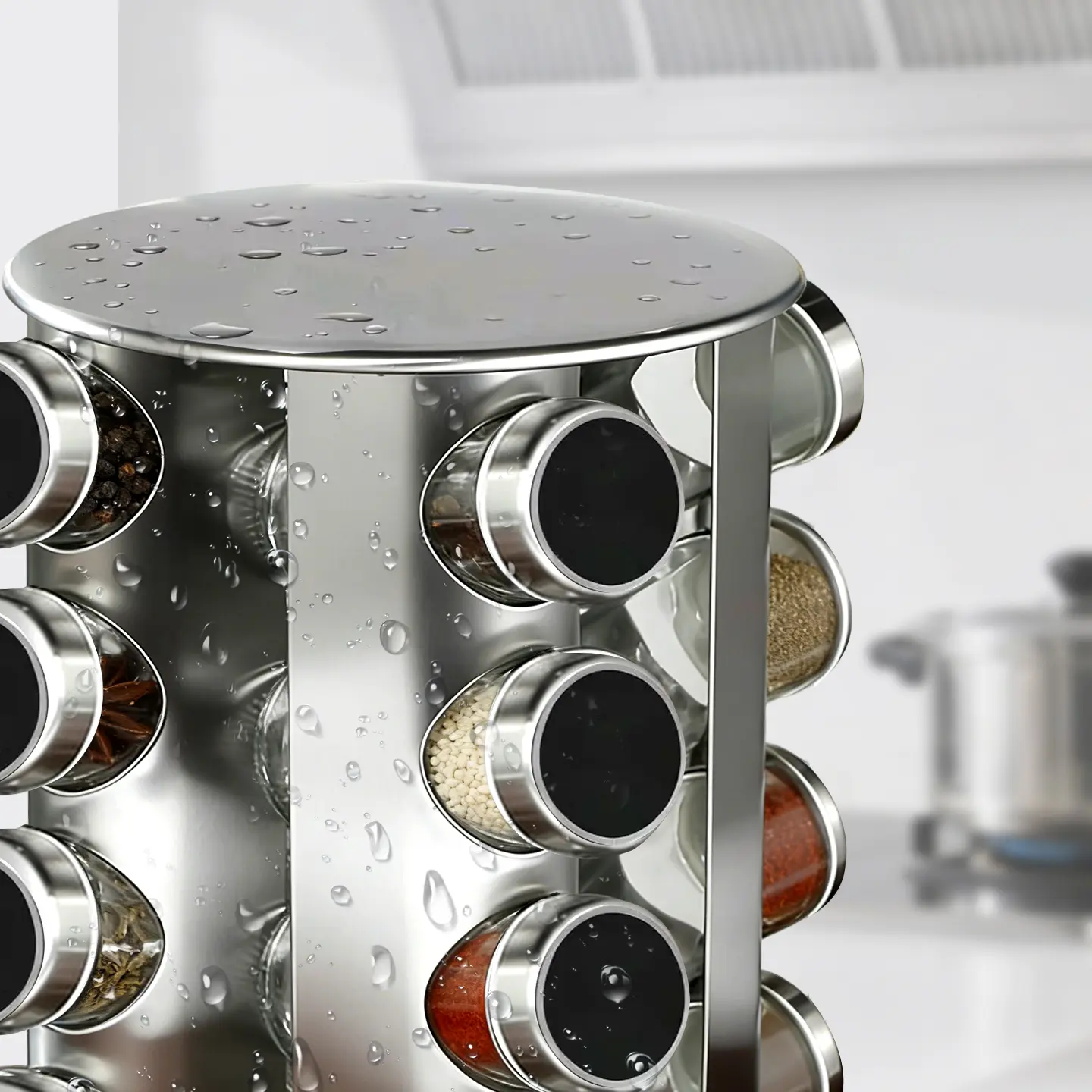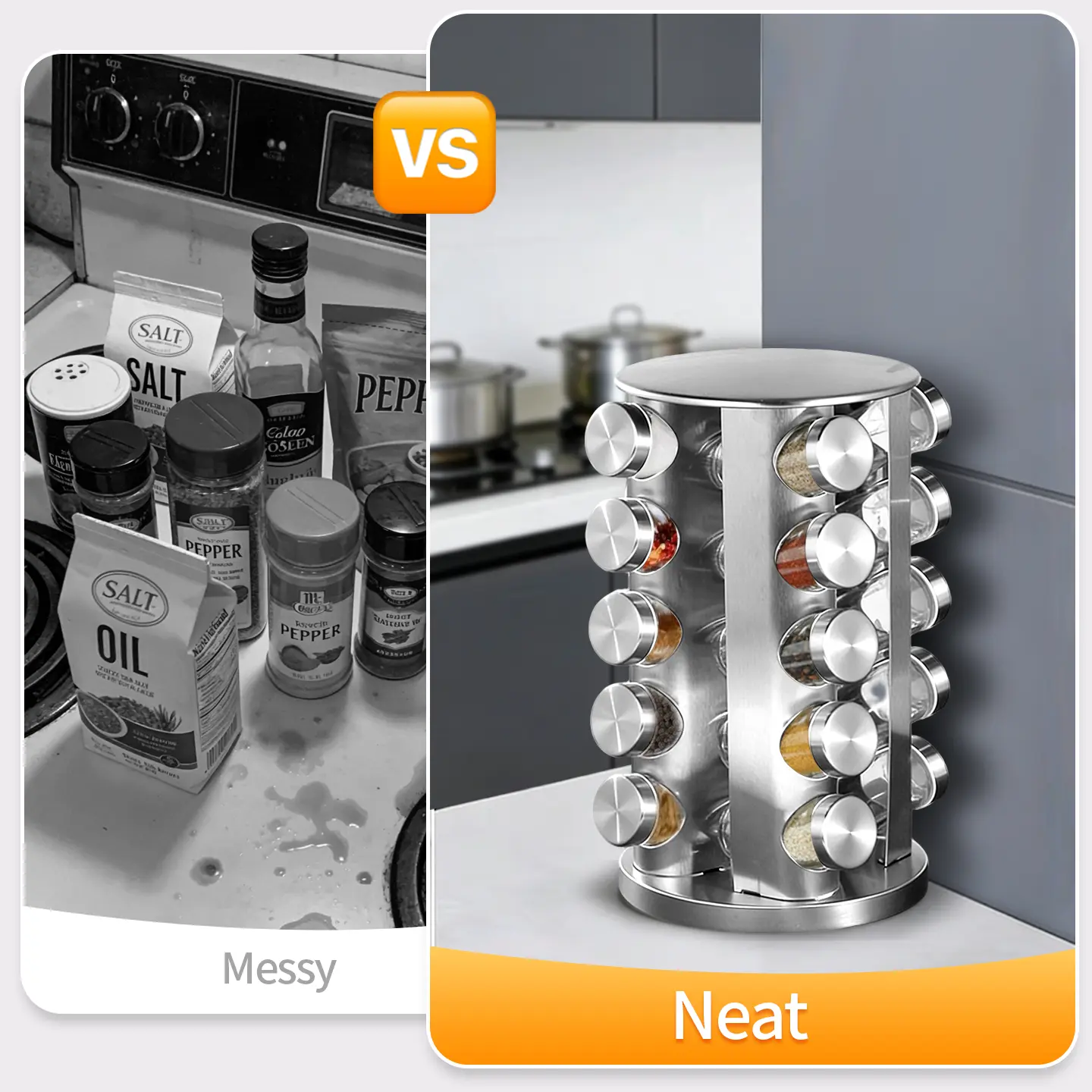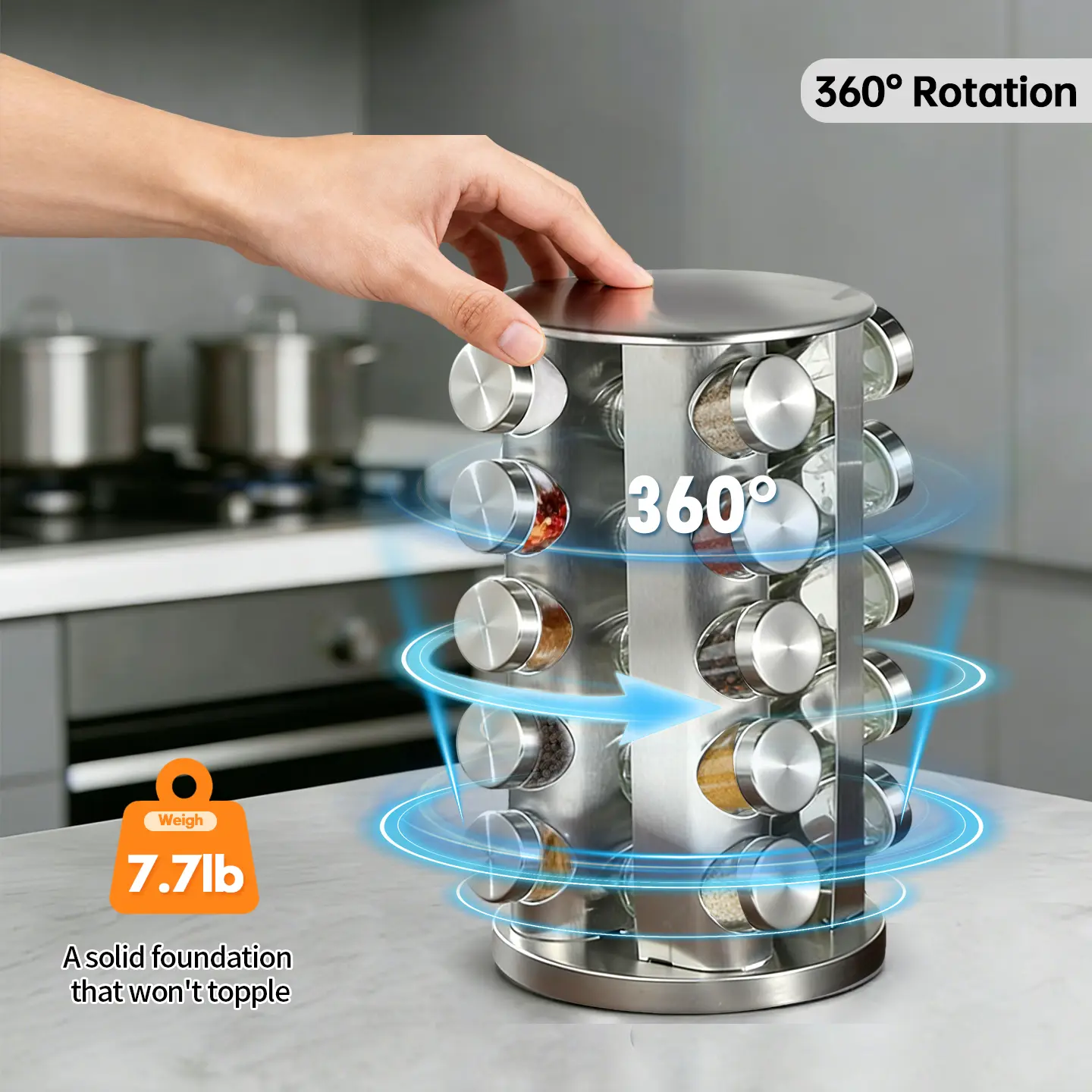 New multifunctional rotating kitchen spice rack & seasoning storage box set, 360° rotating design, stable basewhite cap