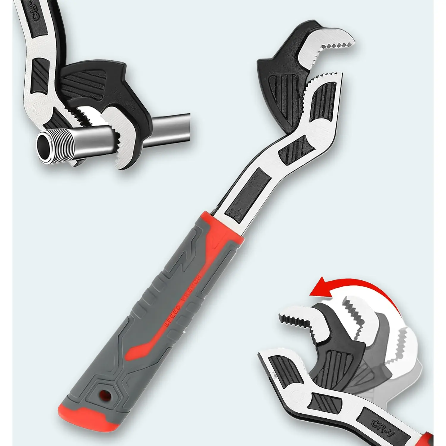 The forged double-threaded jaws of our Multifunctional Self-locking Wrench provide excellent anti-slip properties, allowing for quick and precise adjustments.This feature makes our Multifunctional Self-locking Wrench reliable and capable of rotating backwards and repositioning without slipping, saving you time and effort during your projects.