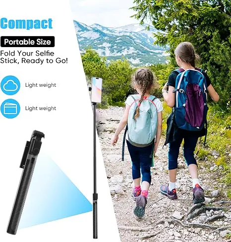 This is a very convenient item as it is lightweight and serves as either a selfie stick or tripod. One caution is that is likely isn't ideal outside if there is a strong wind or possibility of someone bumping into it as it could fall over.