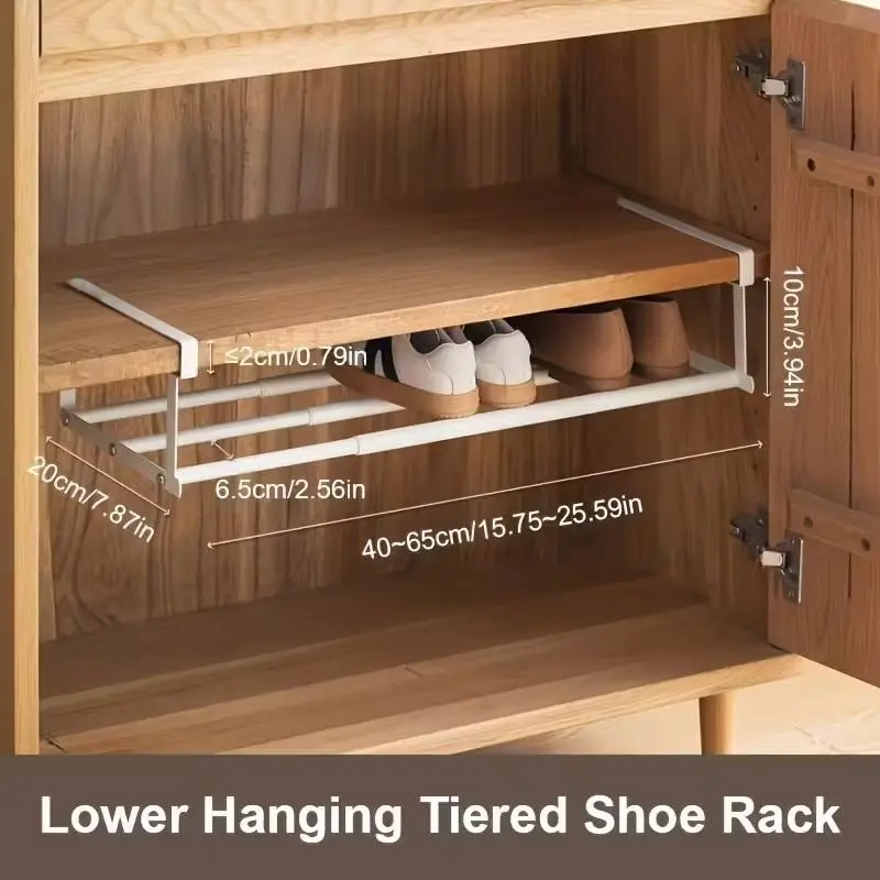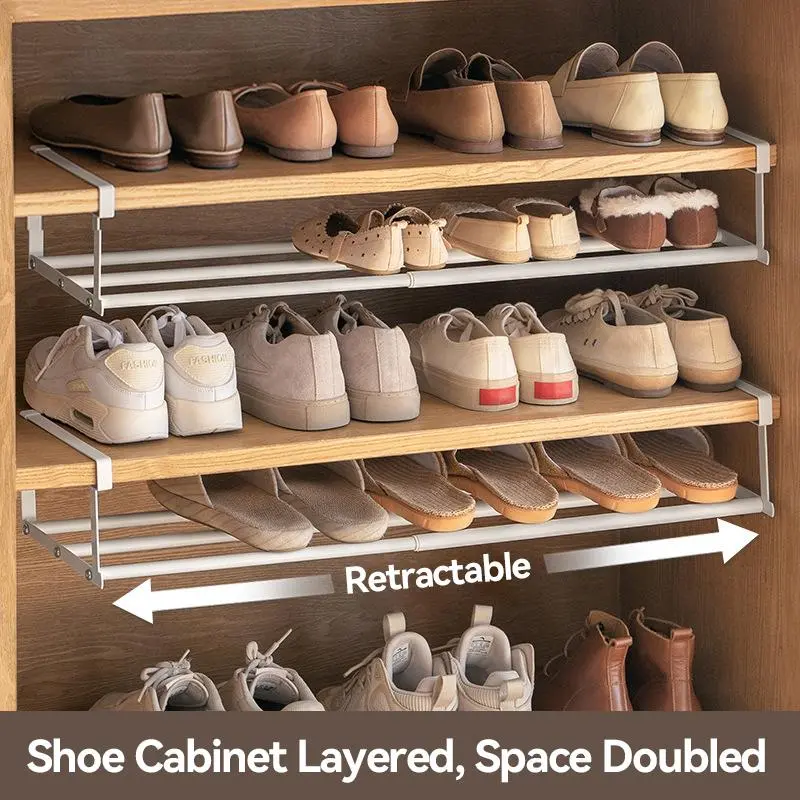 Multifunctional Shoe Storage Rack, Adjustable Hanging Organizer, Under Cabinet Layered Storage, Space Saving Closet Organizer Retractable Installation