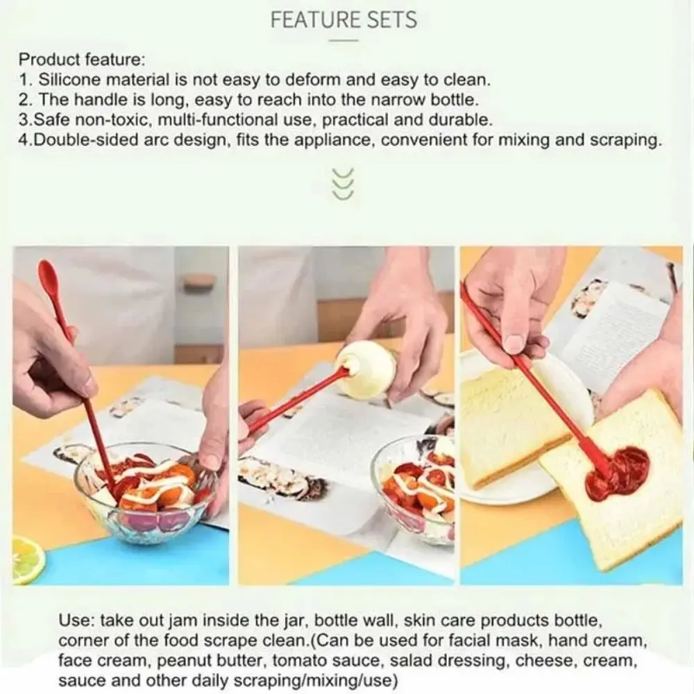 Multifunctional Silicone Scraper Spatula: Kitchen Baking Tool, Non-Slip Cooking Utter, Cosmetic Scoop, Portable Jam Jar Cleaner, No-Residue Dishwasher Safe Design, Effortless & Efficient Dual-Use Scraper, Kitchen Cooking Accessories