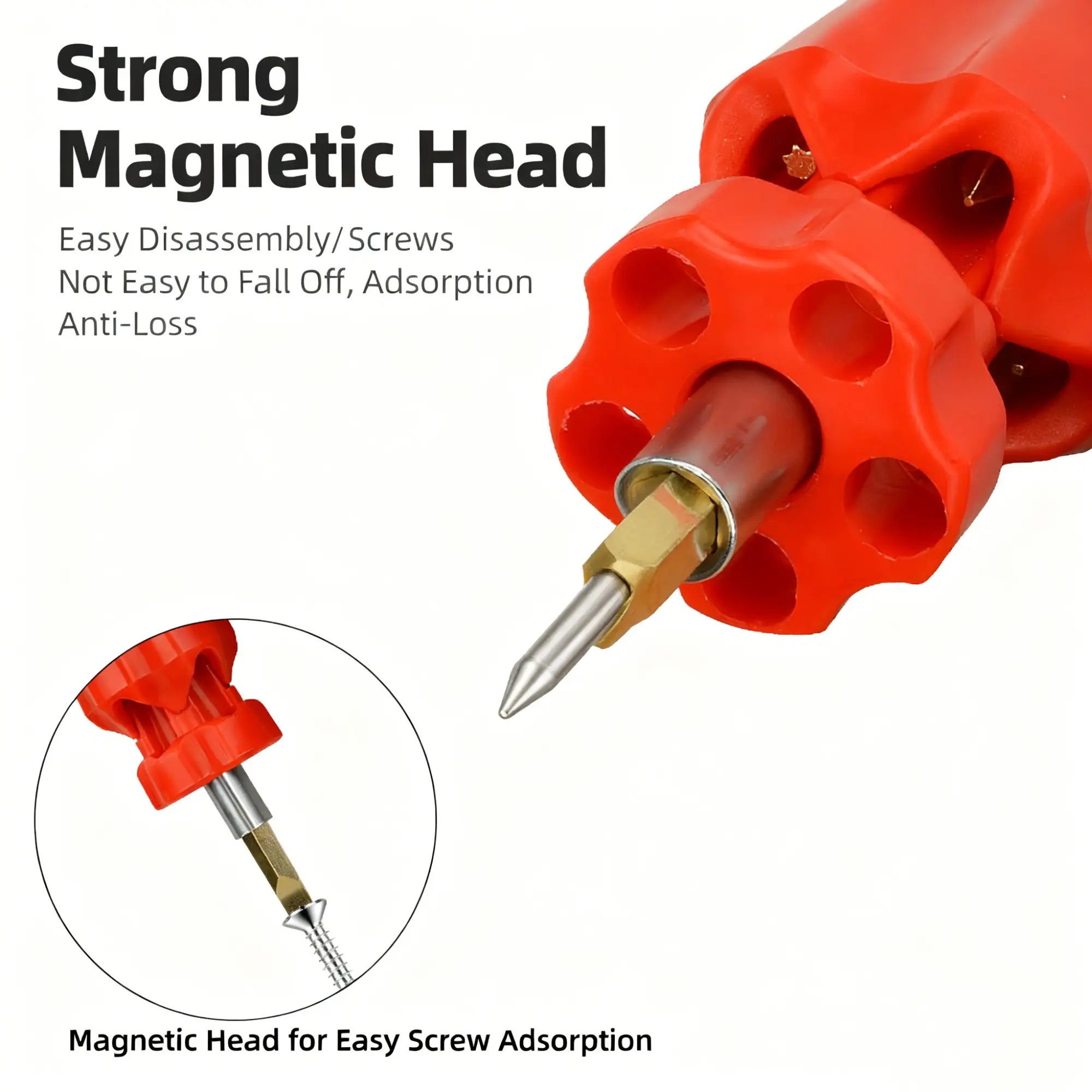 【Six-in-One Functionality】: Offers a variety of tools in one, combining flathead, Phillips, and star screwdrivers for diverse tasks.