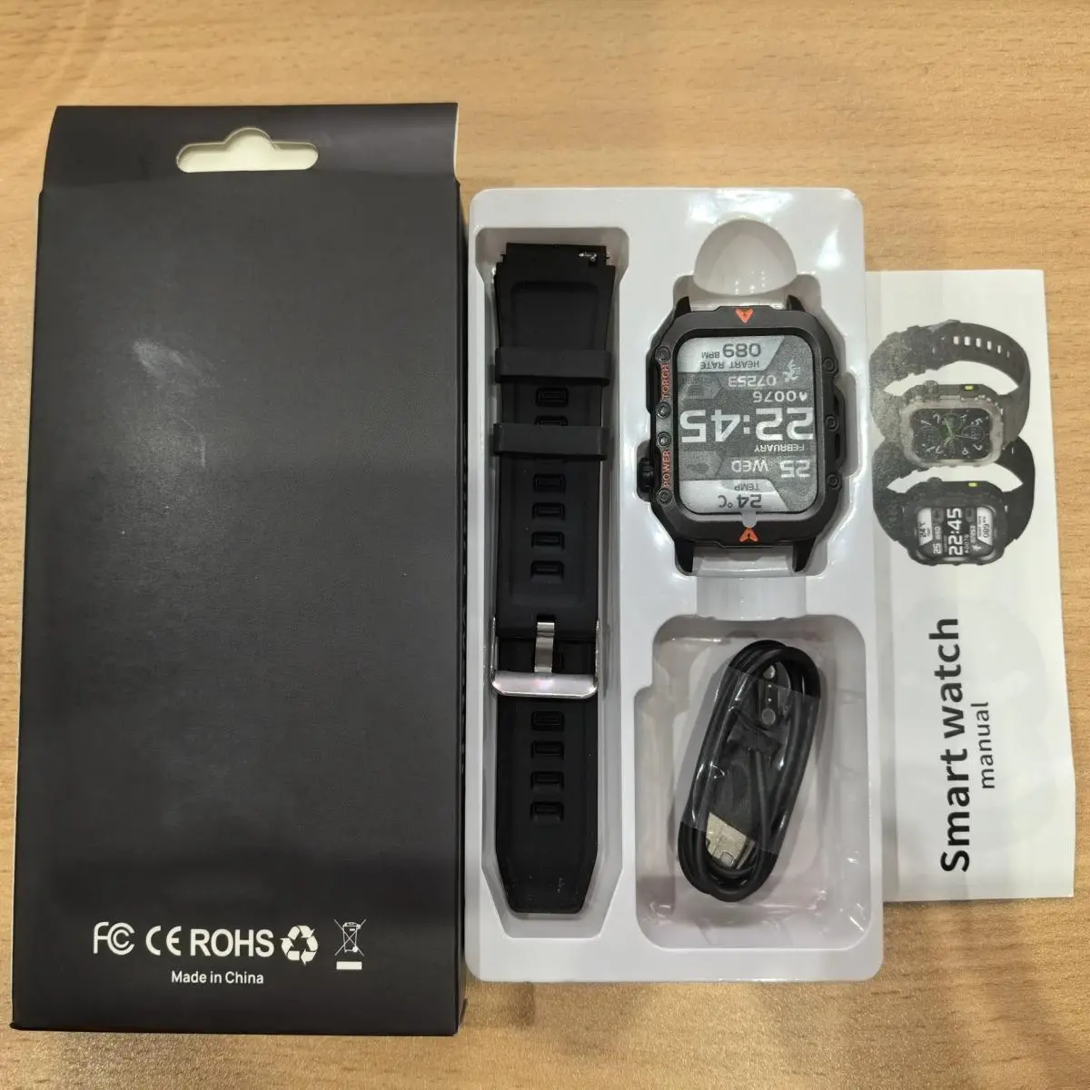 Inside the box, you'll find the smart watch with a comfortable silicone strap and built-in rechargeable battery. Just remember to charge it for 30 minutes before first use for optimal performance. Whether you're an iOS or Android user, this watch syncs effortlessly, making your life simpler and more connected.