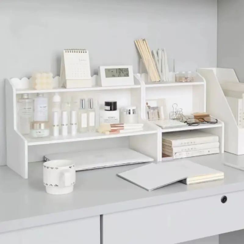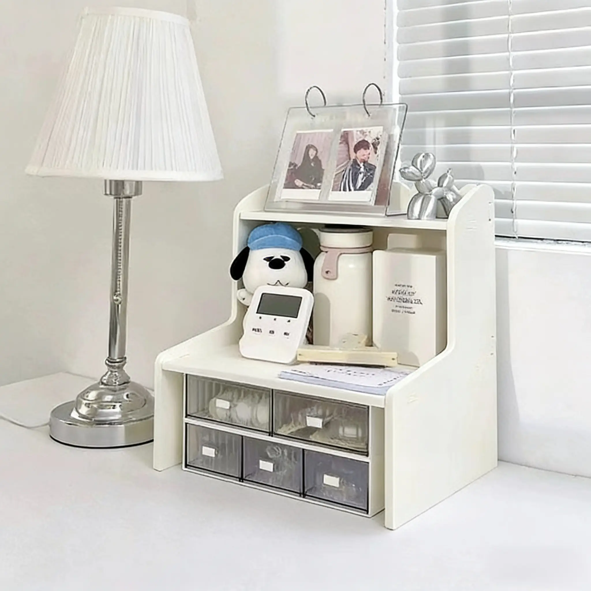 【Two-tier storage】: Features dual-layer shelves allowing for organized and efficient storage of items like cosmetics and stationery.