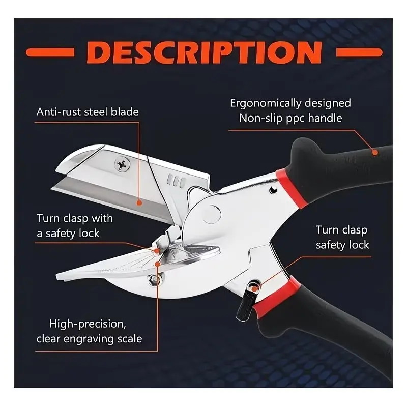 5. Multifunctional Wire Slot Scissors, Adjustable Angle 45-135 Degrees, Cutting Plastic PVC, Industrial Tool, Durable Building Supplies
