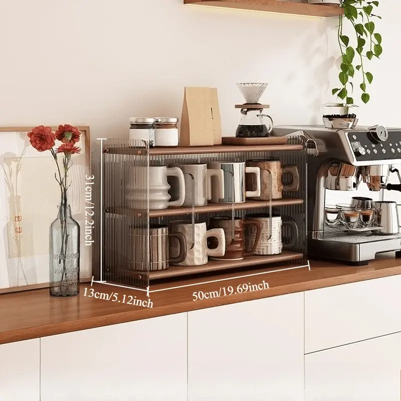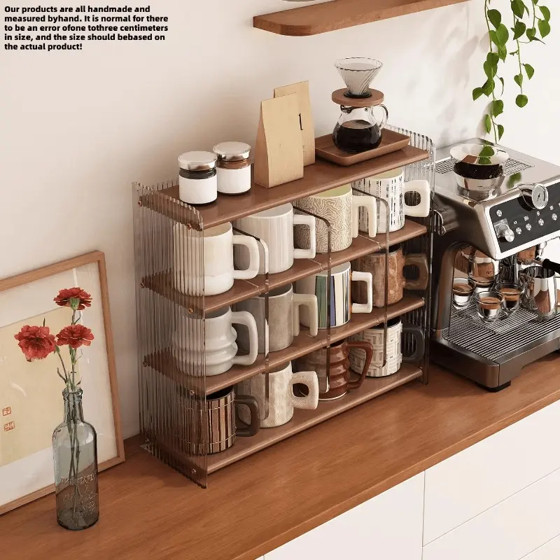 Multilayer Acrylic Cup Holder Rack, Adjustable Display Shelf, Space-Saving Storage for Kitchen Living Room Office, Easy Assembly Desk Organizer, Clear Multilayer Storage