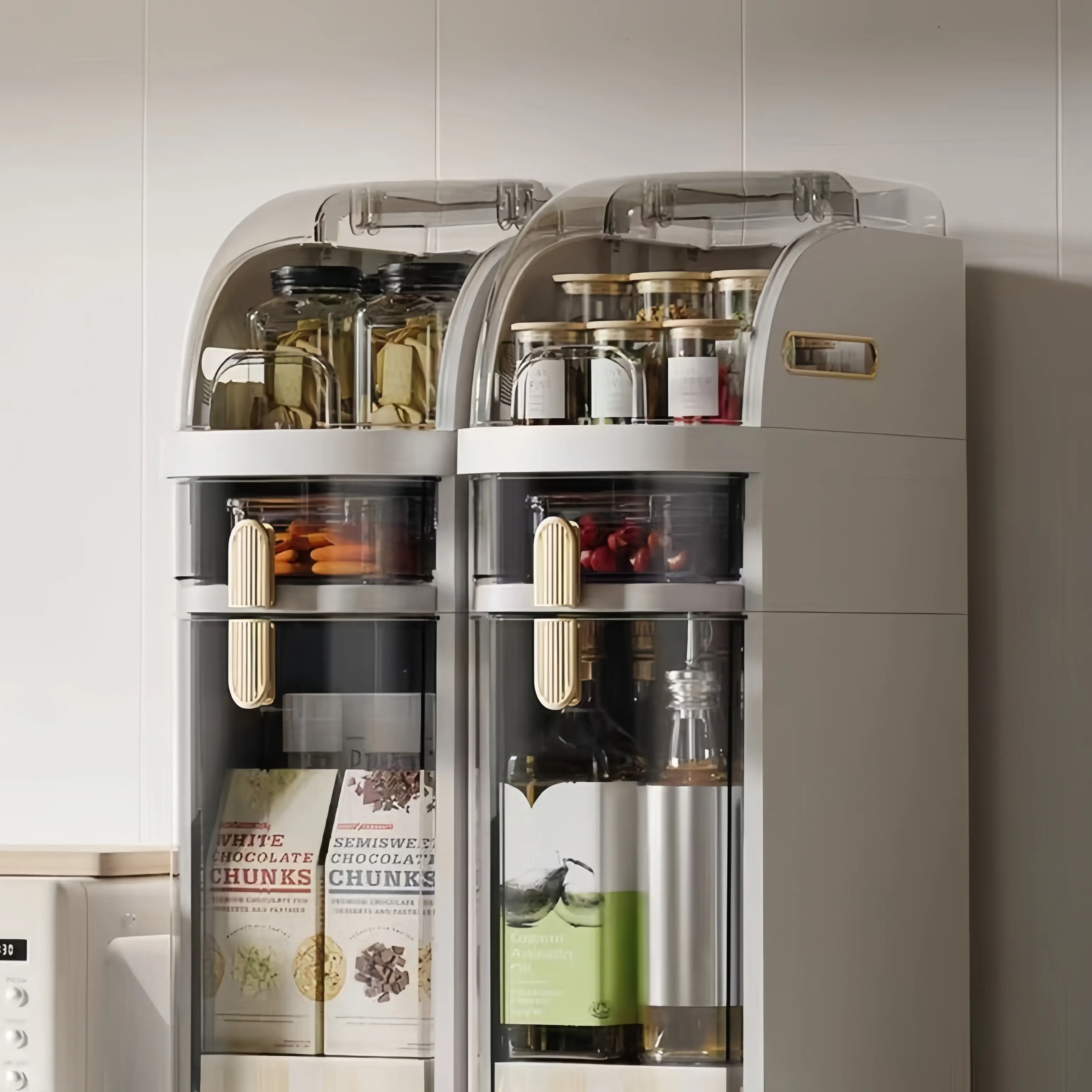 It’s convenient but the size isn’t large enough for me. It’s wider rather than tall looking. It looks organized and colorful on my kitchen counter. I would love to buy more. This isn’t for large storage. It’s for quick and easy access instead of you opening every big jar.